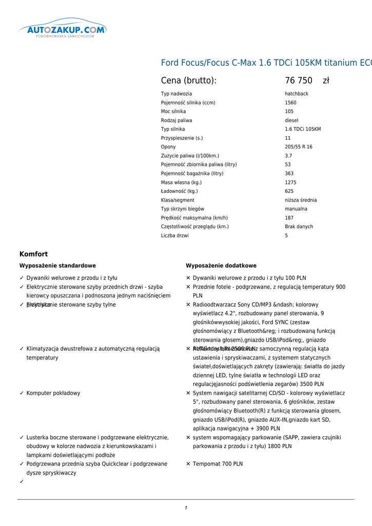 Ford Focus/Focus C-Max 1.6 TDCi 105KM titanium ECO