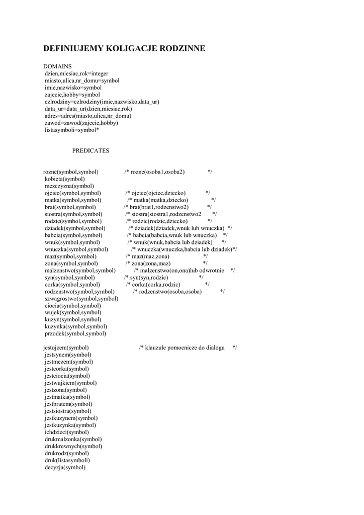 jestkuzynka(Imie):-kuzynka(Imie,X),d(X,DX),write("-kuzynk† ",DX),nl,fail.