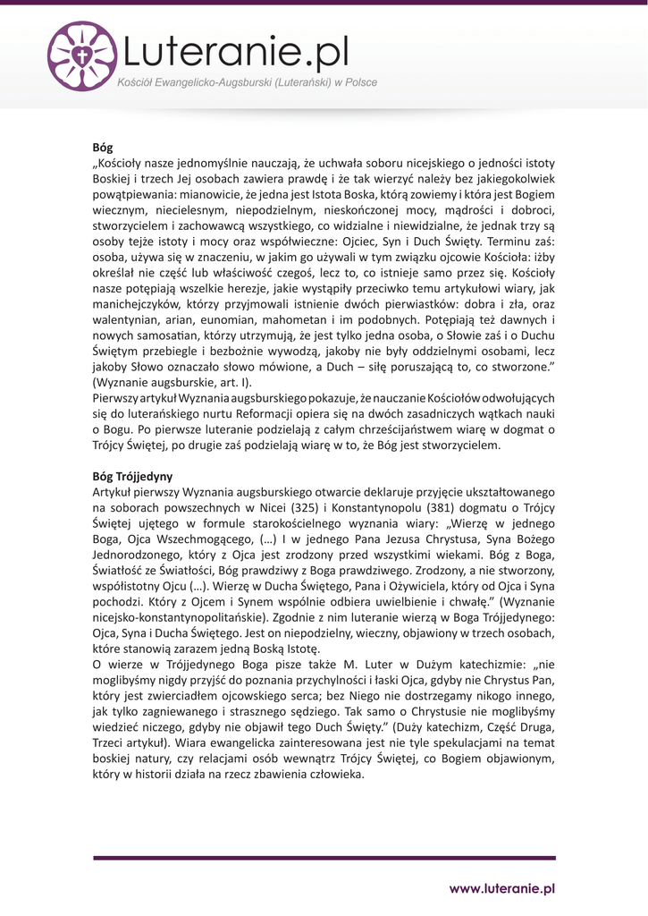 www.luteranie.pl Bóg „Kościoły nasze jednomyślnie nauczają, że