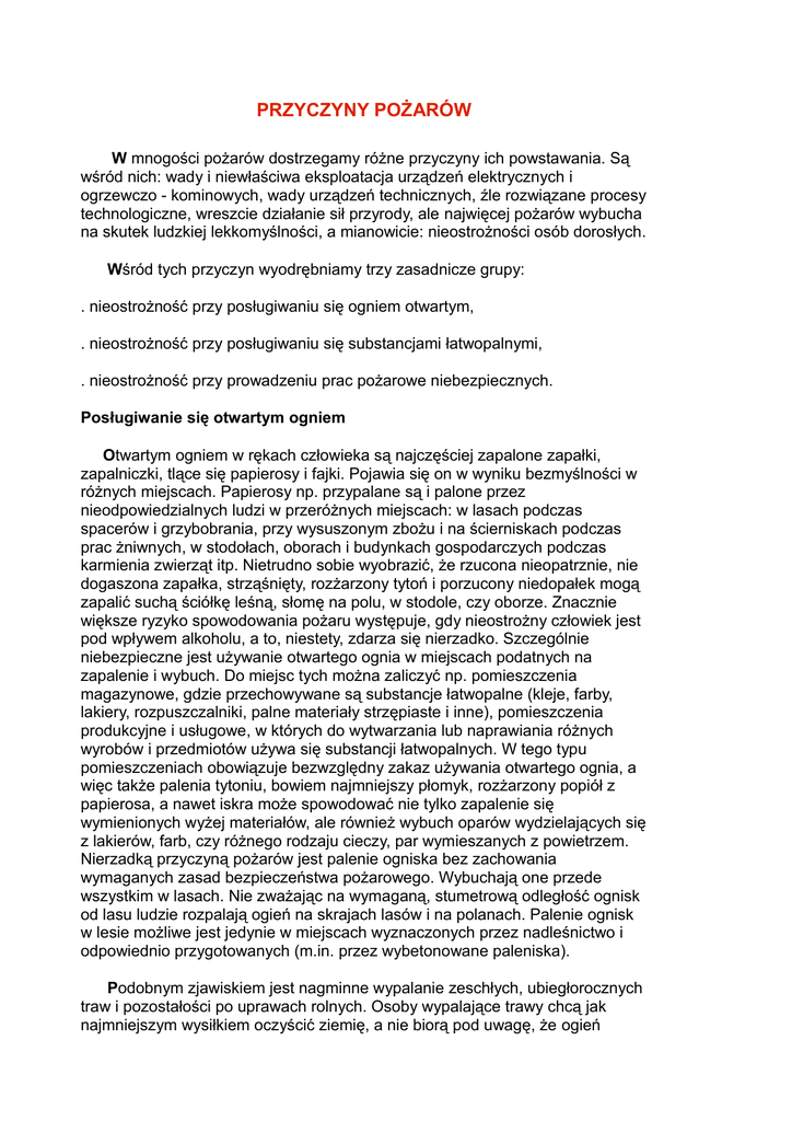 PRZYCZYNY POŻARÓW