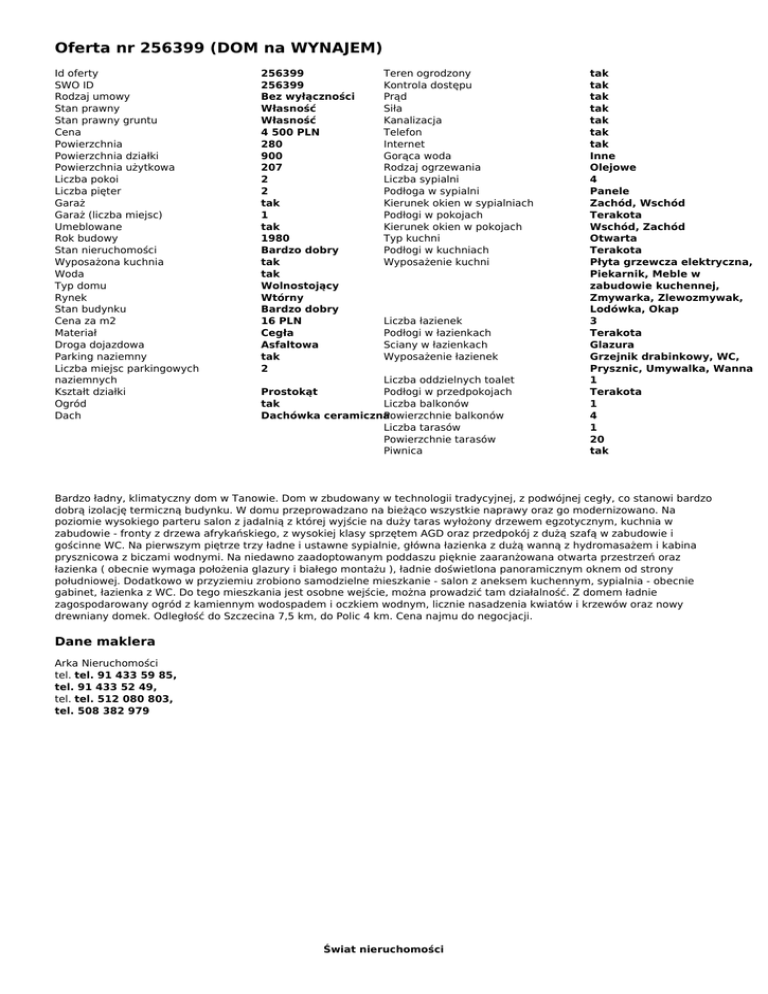 Oferta nr 256399 (DOM na WYNAJEM)