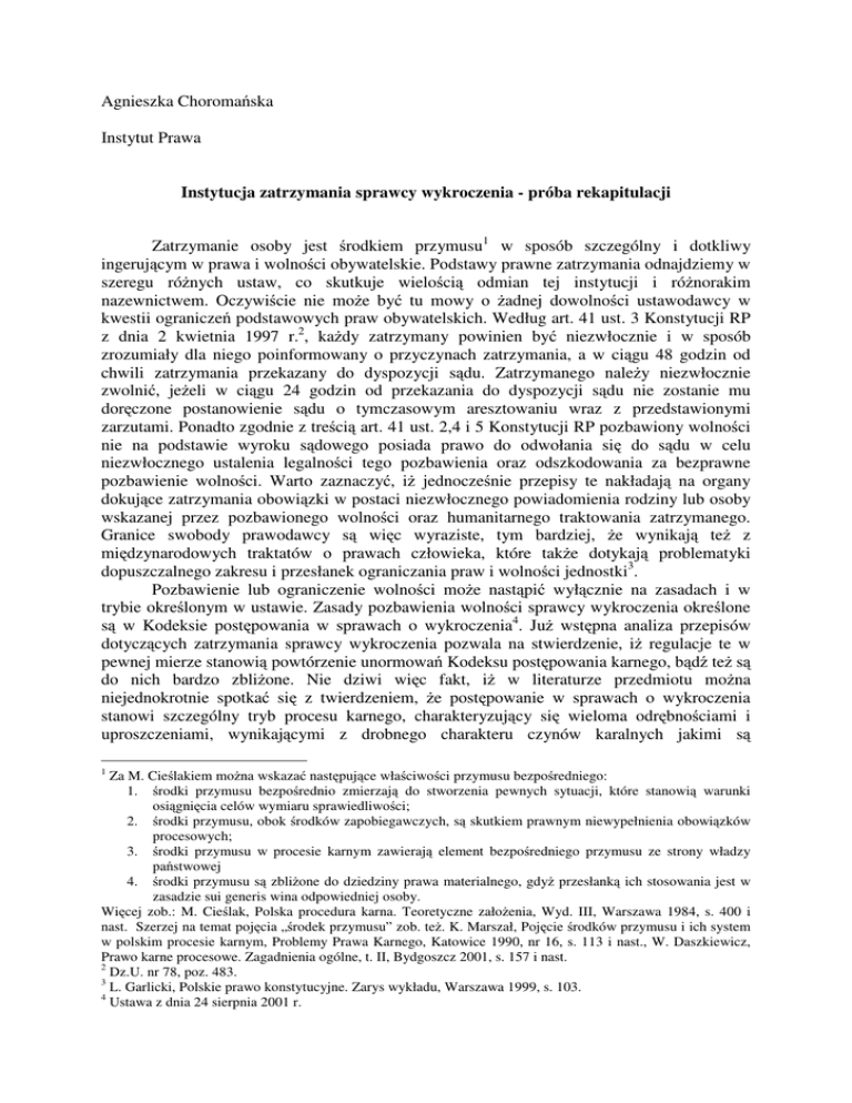 Agnieszka Choromańska Instytut Prawa Instytucja zatrzymania