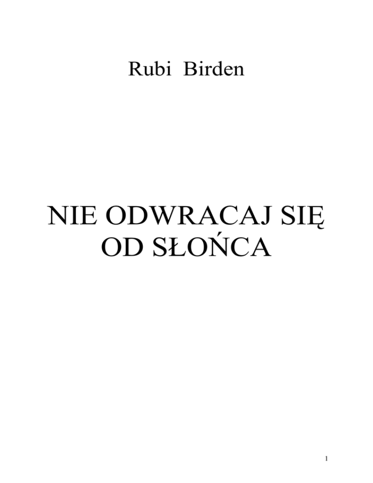 Rubi Birden NIE ODWRACAJ SIĘ OD SŁOŃCA 1 Wiesz, to powinien być albo szczęśliwy, albo smutny dzień. Przejście na emeryturę. Cezura. Niektórzy zaczynają nowe życie, zapisują się na kurs malarstwa sztalugowego, jadą na wycieczkę do Chin, kupują sobie młodzieżowe ciuchy. Inni siadają w fotelu i latami czekają na śmierć. Ja nie czułam się ani szczęśliwa, ani smutna. Nie miałam planów na przyszłość. Odejście z pracy potraktowałam tak, jakby chodziło tylko o weekend. Nie byłam jeszcze taka stara, miałam pięćdziesiąt pięć lat, wyglądałam na czterdzieści. No, może na czterdzieści pięć. Ale czułam się, jakbym miała osiemdziesiąt. Chyba zresztą zawsze czułam się jak staruszka. Urządziliście mi pożegnalne przyjęcie. Były owoce, ciasto i jakieś obrzydliwe, słodkie wino, którego nie dało się wypić, pamiętasz? Ciasto zniknęło w zastraszającym tempie, jakby ludzie jedli, spiesząc się na pociąg. Kiedy wszyscy wyszli, wzięłam pod pachę pożegnalny prezent – gigantyczny zegar ścienny w złotej ramce (które z was to wymyśliło?) i wyszłam z instytutu. Stałeś na schodkach. Trzymałeś ręce w kieszeniach swoich nieśmiertelnych, zgniłozielonych sztruksowych spodni. - Podwieźć cię? – zapytałeś. Byłam zdziwiona tą nagłą próbą nawiązania kontaktu. Nigdy wcześniej nie odezwałeś się do mnie prywatnie. Odmówiłam. Staliśmy chwilę w ciszy, która z każdą sekundą stawała się coraz bardziej krępująca. - No, to co? – chyba byłeś trochę zdenerwowany. Chciałam powiedzieć coś głupiego, ale ugryzłam się w język. Byłam zaskoczona i poirytowana własnym zaskoczeniem. – Do zobaczenia. – tak powiedziałam. „Do zobaczenia”. * Zachowałam się jak kretynka. „Do zobaczenia”? A cóż to do licha miało znaczyć? Gdzie niby mielibyśmy się spotkać? Bo przecież nie w poczekalni u dentysty. Absurd. Po co ludzie w ogóle mówią takie rzeczy? Byłam na siebie zła. Zegar tykał wściekle. Zatrzymałam się. Wyciągnęłam to cudo z pudełka. Było wielkości starodawnych zegarów na dworcach kolejowych. Ramka złociła się niemiłosiernie. - Ty sukinsynu! – wyrwało mi się chyba dość głośno, bo chłopak myjący okno wystawowe zamarł na chwilę. Pewnie pomyślał, że jestem niezłą świruską, nie ma co. W sumie miałby rację, no bo kto normalny gada do zegara na ulicy. „Jak można dać zegar komuś odchodzącemu na emeryturę? Żeby mu odmierzał czas do końca?” Zaczęłam rozglądać się za koszem na śmieci. Nie było mowy, żeby to zegarmistrzowskie monstrum zmieściło się do zwykłego ulicznego śmietnika. Na szczęście na chodniku stał wielki kontener do wywożenia gruzu. Wrzuciłam do niego zegar. Cykanie ustało. „Co za ulga! Boże, co ja wyczyniam, przecież zachowuję się dziś jak kompletna wariatka! To tylko emerytura, nie koniec świata. Rano miałam to gdzieś, a teraz zachowuję się jak świr. To wszystko przez ten zegar. Żadnego odliczania! Poprawiłam pasek torebki i ze stoickim spokojem zeszłam na jezdnię. W niedozwolonym miejscu. Wprost pod koła czerwonego forda. Samochód zahamował z piskiem, zatrzymując się niecałe pół metra od moich kolan. Czas się zatrzymał. Nic się nie działo. Miałam wrażenie, że stoję tam już nie wiem ile. W głowie miałam kompletną pustkę. - Ty głupia dziwko! Ty stara krowo! Popieprzyło cię?! Jak chcesz popełnić samobójstwo, kup sobie sznurek albo się otruj! – kierowca forda był już o krok ode mnie. Widziałam, jak jego ślina pryska na wszystkie strony. Rzuciłam się do ucieczki. Umilkł zaskoczony, ale parę 2 sekund później puścił kolejną wiąchę, która jeszcze dobitniej świadczyła o jego talencie oratorskim. Zatrzymałam się dopiero za rogiem. Serce waliło mi jak oszalałe. Kompletnie przestałam nad sobą panować i rozbeczałam się jak dziecko. Podeszła do mnie malutka staruszka i zapytała, czy coś się stało. Tylko pokręciłam głową. Przecież nie będę opowiadała obcej kobiecie na ulicy, że zmarnowałam sobie życie. Patrzyłam, jak się oddala, przygarbiona, ciągnąc za sobą wózek na zakupy. Chciałam pobiec za nią, zapytać o wszystko i powiedzieć wszystko… „Muszę wziąć się w garść. Muszę wziąć się w garść. Muszę wziąć się w garść. Muszę wziąć się w garść” – kołatało mi w głowie. Nogi wciąż miałam jak z waty. Grawitacja była silniejsza niż zwykle. Ręce też ciężej wisiały wzdłuż ciała. Miałam wrażenie, że jeśli jeszcze chwilę postoję w miejscu, mięśnie oderwą się od kości i zsuną ze mnie jak skafander, zostawiając goły szkielet. Byłam zmęczona, tak strasznie zmęczona. * Kiedy znalazłam się na wysokości otwartych drzwi do pubu, weszłam prawie bezwiednie. W środku śmierdziało dymem papierosowym i przepoconymi skarpetami. Było pusto, tylko w kącie dwóch wstawionych gości próbowało grać w bilard. Zastanawiałam się, jak w ogóle są w stanie wcelować w bilę. Podeszłam do baru. Nie zdejmując torebki ani kurtki, wdrapałam się na stołek. Nogi dyndały mi w powietrzu. - Podwójna whisky – przystojniaki w barach zawsze zamawiają podwójną whisky. Wypiłam jednym haustem. Moja matka drugi raz dostałaby zawału, gdyby to zobaczyła. Potem wypiłam jeszcze jedną podwójną. I jeszcze jedną. I nie ma co ukrywać, wstawiłam się koncertowo. * Jakoś dziwnie pierwszy raz w życiu klucz nie pasował do zamka. Upewniłam się, że trafiłam pod właściwy adres. Wszystko było w porządku. Mój dom. Moje drzwi. Mój klucz. Cholera, tylko ktoś wymienił zamki! Nie sądziłam, że otworzenie drzwi może być takie trudne. Już myślałam o tym, żeby wybić szybę, kiedy wreszcie udało mi się dostać do środka. Usiadłam na kanapie, oparłam się, odchylając głowę do tyłu. To nie był dobry pomysł. Sufit zaczął wirować, miałam wrażenie, że oczy dostały jakiejś pląsa