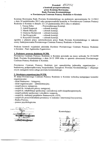 Komisja Rewizyjna Rady Powiatu Krośnieńskiego na podstawie upoważnienia Nr 11/2012