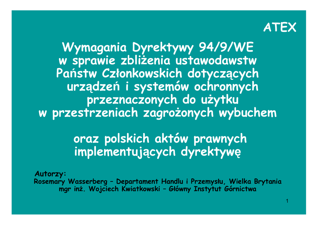 ATEX Wymagania Dyrektywy 94/9/WE w sprawie zbliŜenia
