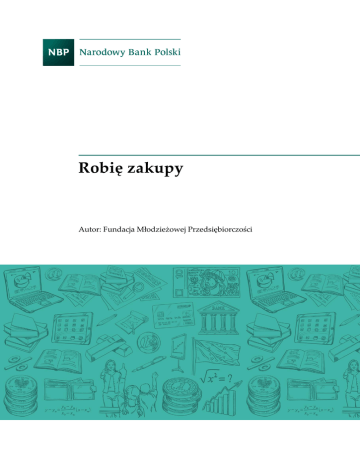 Robię zakupy Autor: Fundacja Młodzieżowej Przedsiębiorczości Robię zakupy Treści nauczania Racjonalne wybory podczas dokonywania zakupów, prawa konsumenta, ocenianie i selekcjonowanie informacji dostępnych konsumentowi, wpływ reklamy na podejmowane decyzje. Po zakończonych zajęciach uczeń powinien Sporządzić listę zasad rozsądnego robienia zakupów, oceniać i selekcjonować informacje dostępne konsumentom, wskazać źródła informacji o prawach konsumenta, wymienić podstawowe prawa konsumenta, analizować i oceniać wpływ reklamy na zachowania konsumentów. Konsultant i informacje dodatkowe przedstawiciel Federacji Konsumentów, www.uokik.gov.pl, www.skp.pl, sprzedawca, agent reklamowy. Cel: kształtowanie umiejętności racjonalnych wyborów podczas dokonywania zakupów. Pojęcia: prawa konsumenta, kredyt, zaliczka, zadatek, gwarancja, rękojmia, reklamacja, reklama. Adresat: uczniowie szkół gimnazjalnych. Narodowy Bank Polski 2 Robię zakupy Oczekiwane rezultaty Po zajęciach uczeń: potrafi sporządzić listę zasad rozsądnego robienia zakupów, ocenia i selekcjonuje informacje dostępne konsumentom, zna podstawowe prawa konsumenta, ocenia i analizuje wpływ reklamy. Materiały: materiał pomocniczy nr 1 – „Kilka słów o reklamie”, materiał pomocniczy nr 2 – „Zaproponuj dobrą radę!”, materiał pomocniczy nr 3 – „Jak dokonywać udanych zakupów?”, foliogram 1. – „Zakupy”. Proponowany przebieg zajęć 1. Przedstaw temat tych zajęć. Podziel uczniów na grupy 3-4-osobowe. Każdej z grup daj inny rodzaj produktów: I grupa – kilka kredek różnych producentów, II grupa – rozmaite rodzaje kleju, III grupa – różne temperówki czy cienkopisy, plecaki bądź zeszyty itd. Poinstruuj, żeby przetestowali produkty i wybrali – ich zdaniem – najlepszy, uzasadniając swój wybór. Po prezentacji pracy w zespołach zapytaj: Co braliście pod uwagę? Które z tych elementów są ważne i zdecydowały o wyborze najlepszego produktu? Skąd czerpaliście informacje o jakości produktu? Narodowy Bank Polski 3 Robię zakupy Czy przy codziennych zakupach bierzecie pod uwagę te informacje? Na podstawie tych wiadomości sformułujcie krótkie wnioski, np.: „Jakość produktu decyduje o jego zakupie”. 2. Poinformuj uczniów, że planujesz zakup roweru, poproś ich o radę. Kiedy będą podawać swoje propozycje, komentuj je krótko: za duży, za mały, zbyt skomplikowany, zbyt ciężki itd. Wytłumacz uczniom, że biorąc pod uwagę swoje preferencje, starasz się zawęzić pole wyboru tylko do kilku marek lub modeli. Zapytaj uczniów, co jeszcze – oprócz swoich preferencji – powinni wziąć pod uwagę przy podejmowaniu decyzji: bezpieczeństwo, koszty i warunki zakupu oraz eksploatacji, serwis i warunki gwarancji, wyposażenie, części wymienne itd. Nawiązując do tych dwóch ćwiczeń, spróbujcie ułożyć listę dobrych rad, które mogą okazać się pomocne przy dokonywaniu rozsądnych zakupów. Zapisuj rady podawane przez uczniów na dużym arkuszu papieru (możesz wykorzystać foliogram). Sporządzoną listę zawieście w widocznym miejscu, można ją uzupełniać w trakcie lekcji lub pod ich koniec jako podsumowanie zajęć. 3. Zaproponuj, aby każdy na karteczce zapisał jakiś przedmiot, który ostatnio kupił. Może to być koszulka, płyta, czekoladka, książka itd. Zapytaj, w jaki sposób dowiedzieli się o tym produkcie, skąd mieli informacje na jego temat, co spowodowało, że go zakupili. Odpowiedzi mogą być rozmaite: już wcześniej kupowałam i byłam zadowolona, przekaz słowny – koledzy, znajomi, rodzina powiedzieli mi o tym produkcie, zakup pod wpływem impulsu – zobaczyłam ten produkt przypadkiem, kiedy kupowałam coś innego, media – obejrzałam reklamę w telewizji, przeczytałam w gazecie, usłyszałam reklamę lub ogłoszenie w radio, zobaczyłam reklamę na autobusie, plakacie. Narodowy Bank Polski 4 Robię zakupy Wymienione czynniki wpływające na dokonywanie przez nas zakupów przyjmują różne formy reklamy produktów (opinia bliskich osób, zachęta ze strony sprzedawcy, reklama na plakatach itd.) Poproś uczniów, żeby wypełnili tabelkę (możesz narysować ją na tablicy, a uczniowie przerysują na kartki). Tabela 1. Produkty które kupiłem i z których nie korzystam Produkt Przybliżona cena Jaką inną rzecz, której potrzebuję, mogę w to miejsce kupić? 1…………………………….. 2…………………….………. 3………………….…………. 4………………….…………. 5………………….…………. Po odczytaniu przez uczniów zaznacz, że pewnie każdy z nas czasami dokonuje nieprzemyślanych zakupów, a później z nich nie korzysta i zalegają one w szafie. Odwołaj się do listy dobrych rad, którą sporządziliście wcześniej. Bez wątpienia wiele z tych produktów kupujemy pod wpływem reklamy. 4. Przeprowadź z uczniami krótką rozmowę na temat oglądanych przez nich reklam. Zwróćcie uwagę, jak bardzo agresywnie wdzierają się w nasze życie. Możesz też podzielić uczniów na kilkuosobowe zespoły informując, że ich zadaniem jest przygotowanie prezentacji dowolnego wybranego przez siebie produktu, bez użycia słów, odegranie scenki, bez wymieniania nazwy tego produktu. Czas prezentacji około 30 sekund. Narodowy Bank Polski 5 Robię zakupy Podczas prezentacji poszczególnych grup pozostali uczniowie odgadują, jaki produkt jest reklamowany. W omówieniu prezentacji zwróćcie uwagę, że każda scenka była swoistą reklamą wybranego produktu. Porozmawiajcie o cechach dobrej reklamy, co sprawia, że ją zapamiętujemy, że nas przyciąga. Rozdaj uczniom materiał pomocniczy nr 1 i poproś o zapoznanie się z nim. Powiedz, aby uczniowie dobrali się w pary, każda para powinna wybrać sobie jedną z reklam, jakie ukazują się w mediach. (Możesz też wcześniej poprosić uczniów, aby przynieśli przykładowe reklamy na z
