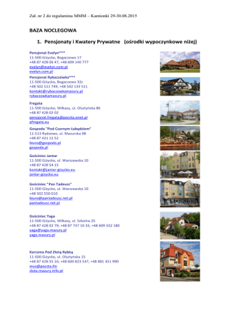 BAZA NOCLEGOWA 1. Pensjonaty i Kwatery Prywatne (ośrodki