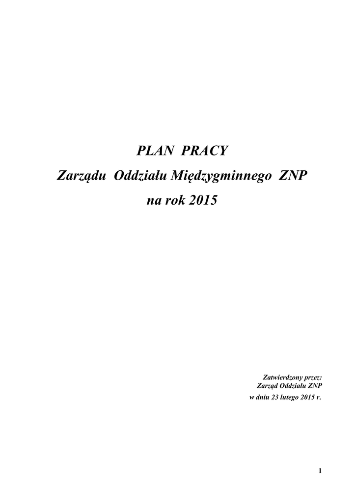 PLAN PRACY Zarządu Oddziału Międzygminnego ZNP na rok 2015