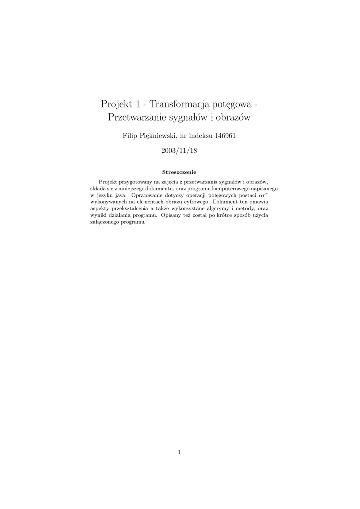 Projekt 1 - Transformacja potȩgowa Przetwarzanie sygnalów i obrazów