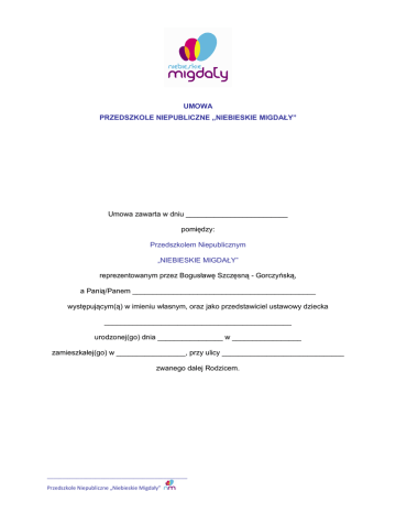 UMOWA PRZEDSZKOLE NIEPUBLICZNE „NIEBIESKIE MIGDAŁY
