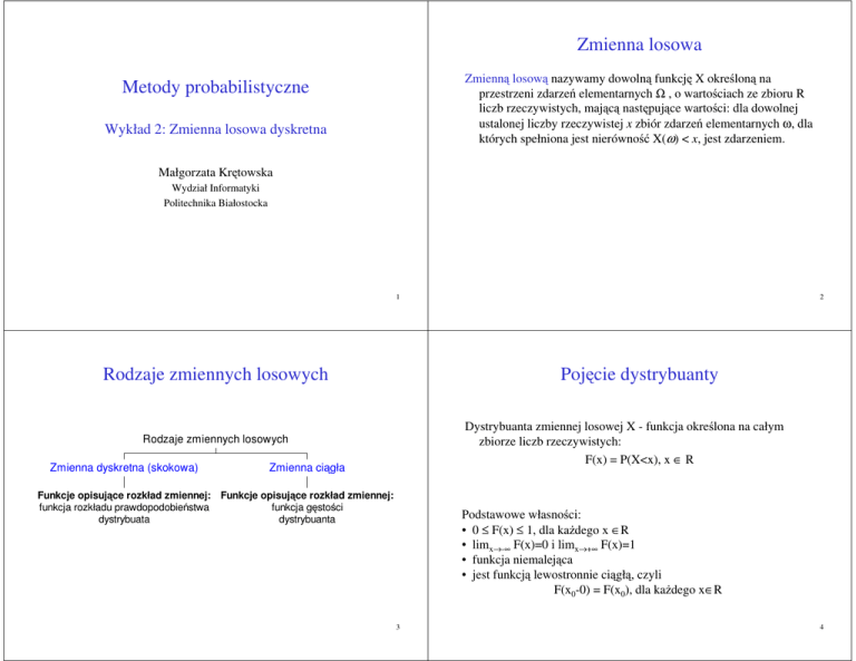 Metody probabilistyczne Zmienna losowa Rodzaje zmiennych