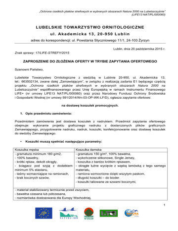 Zapytanie ofertowe - Lubelskie Towarzystwo Ornitologiczne