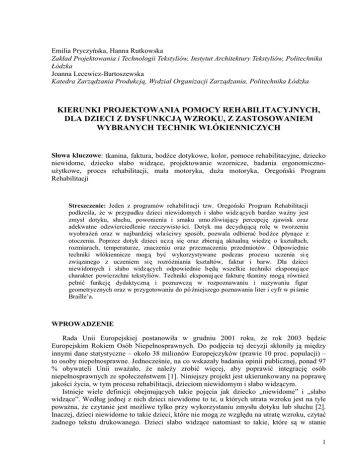 kierunki projektowania pomocy rehabilitacyjnych, dla dzieci z