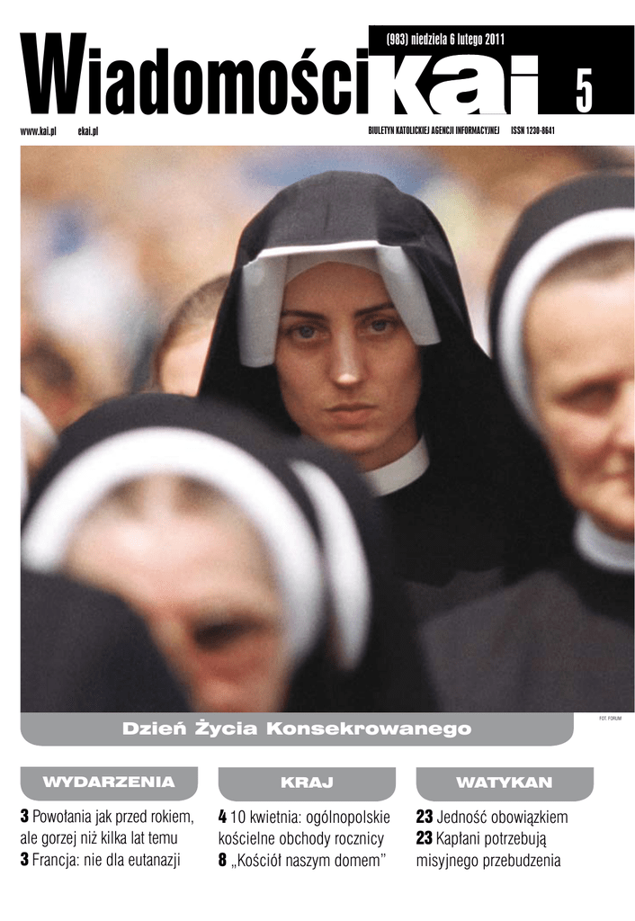 Wiadomości Kai www.kai.pl ekai.pl (983) niedziela 6 lutego 2011 BIULETYN KATOLICKIEJ AGENCJI INFORMACYJNEJ ISSN 1230-8641 Dzień Życia Konsekrowanego WYDARZENIA KRAJ 3 Powołania jak przed rokiem, ale gorzej niż kilka lat temu 3 Francja: nie dla eutanazji 4 10 kwietnia: ogólnopolskie kościelne obchody rocznicy 8 „Kościół naszym domem” WATYKAN 23 Jedność obowiązkiem 23 Kapłani potrzebują misyjnego przebudzenia 5 FOT. FORUM Editorial Zakony, głupcze „Ujawnia się coraz bardziej brak właściwego rozumienia istoty życia konsekrowanego w dzisiejszym Kościele. Niektórzy wręcz uważają, że to przeżytek” – napisał w liście do diecezjan Alina Petrowa-Wasilewicz abp Damian Zimoń. Wraz z biskupami metropolii ogłosił Rok Życia Konsekrowanego, gdyż ilość i jakość powołań zakonnych niczym papierek lakmusowy ujawniają poziom i gorliwość naszej wiary, a ta wietrzeje i wielu od niej odchodzi. Wzrasta też poczucie obcości wobec tradycji, która nas ukształtowała. Asceza mnicha wydaje się być swoistym skandalem, prowokacją, bo jest całkowitym zaprzeczeniem konsumpcyjnych pokus, które roztacza świat mediów i reklam. Życie zakonne i arkadyjska szczęśliwość współczesnego konsumenta to jakby dwie odległe planety, więc jak się porozumieć? Nie sposób wytłumaczyć, czym zajmują się zakonnicy, a co dopiero do takiego życia zachęcić? Jeśli pracują w szkołach, szpitalach i z narkomanami, można wybaczyć im ich ekstrawagancję, ale co powiedzieć o zakonnicach, które zamykają się za klauzurą, żeby się modlić? Trudności z komunikacją „międzyplanetarną” przypomniały mi średniowieczną przypowieść, w której pobożny autor porównuje Pana Boga do karczmarza. Karczmarz ów zaprasza wybranych gości i częstuje ich wybornymi trunkami. Najpierw daje im niewielką ilość wina na zachętę, a gdy się w nim rozsmakują, sami zaczynają przychodzić do Gospodarza. Rozwijając tę metaforę można powiedzieć, że zakonnicy i zakonnice dążą do tego, co najlepsze i najcenniejsze. Pragną szczęścia i radości, która się nigdy nie skończy. A dążąc do niej, przemieniają ziemię na bardziej znośne miejsce tymczasowego pobytu, szczególnie chroniąc je cierpliwą modlitwą. 2 Wiadomości KAI 6 lutego 2011 Obywatele świata Rozmowa z dr Danielą Leggio, prawniczką z watykańskiej Kongregacji Instytutów Życia Konsekrowanego i Stowarzyszeń Życia Apostolskiego, specjalizującą się w problematyce instytutów świeckich. Jak obecnie rozwijają się instytuty świeckie? Jakie tendencje są widoczne z perspektywy watykańskiej? – W państwach takich jak Włochy, Francja, Niemcy, Belgia czy Hiszpania, gdzie powstawały pierwsze instytuty świeckie widoczny jest spadek powołań. A ponieważ zaczyna brakować członków, więc instytuty zwracają się ku innym krajom... Szukając powołań? – Ale nie tak, jak zgromadzenia zakonne, bo instytuty świeckie nie mają swoich domów. Nie jadą więc za granicę, by otwierać nowe placówki, ale w dyskretny sposób nawiązują kontakty z osobami i instytutami z Ameryki Łacińskiej czy Afryki. To właśnie w Ameryce Łacińskiej powstają obecnie nowe instytuty świeckie. To w tym regionie widoczne jest ponowne odkrycie powołania do życia konsekrowanego. W kongregacji wiemy też – chociaż te informacje z trudem do nas przenikają ze względu na sytuację polityczną – o istnieniu instytutów świeckich w Wietnamie czy Chinach, gdzie nie brakuje członków czy kandydatów do tej formy życia konsekrowanego. Z drugiej strony, zmienia się też sposób życia. We Włoszech, gdzie przed laty powstały pierwsze instytuty świeckie, z początku miały one wizję życia wspólnego i prowadzenia różnych dzieł. W ostatnim czasie widoczna jest ewolucja ku pełniejszej świeckości. Członkowie instytutów świeckich, chcą po prostu przeżywać swoje życie, również zawodowe, według charyzmatu danej wspólnoty. Takie zmiany Instytuty świeckie – zatwierdzona w 1947 r. przez Piusa XI forma życia konsekrowanego praktykowana w świecie. Członkowie instytutów składają śluby czystości, ubóstwa i posłuszeństwa, ale pozostają świeckimi i żyją jak inni świeccy, w ich środowisku. zachodzą też w instytutach hiszpańskich. Moim zdaniem, to jest droga, która coraz bardziej prowadzi do tego, żeby lepiej zdefiniować konsekrację w świecie. Dużo zależy więc od dojrzałości świeckich, ale też od miejscowej kultury, sposobu życia czy religijności danego kraju. W praktyce oznacza to, że np. w instytutach w Wietnamie będzie istniał zupełnie inny sposób modlitwy niż w krajach europejskich. Trudność Stolicy Apostolskiej w tym wypadku polega na towarzyszeniu instytutom w zmieniających się realiach. Jakie jest miejsce świeckich konsekrowanych w coraz bardziej laicyzujących się społeczeństwach lub krajach tak odmiennych kulturowo, jak Wietnam? – Jeśli chodzi o kraje azjatyckie, to odpowiedź na to pytanie jest trudna, bo istnieje pokusa przykładania do tamtej rzeczywistości naszych, europejskich wzorów. Tamta kultura jest całkowicie różna od naszej. To, co wspólne dla członków instytutów świeckich – to potrzeba bycia z innymi, dzielenia z nimi życia (losu) w radykalizmie konsekracji. Wszystko inne jest różne, np. koncepcja władzy. W Azji wynika z niej ogromny dystans pomiędzy zarządem a osobami podległymi – instytuty świeckie, które powstają w tej części świata, wydają się więc Europejczykom zakonami. Kiedy Stolica Apostolska pyta: może wy nie jesteście instytutem świeckim, ale jakąś inną wspólnotą życia konsekrowanego? – odpowiadają, że nie. Jesteśmy i chcemy być instytutem świeckim. Obiektywną trudnością jest tłumaczenie Kodeksu Prawa Kanonicznego na język wietnamski, w którym nie istnieje w ogóle wyrażenie „instytuty świeckie”, tylko określenia wskazujące bardziej na formę zakonną 