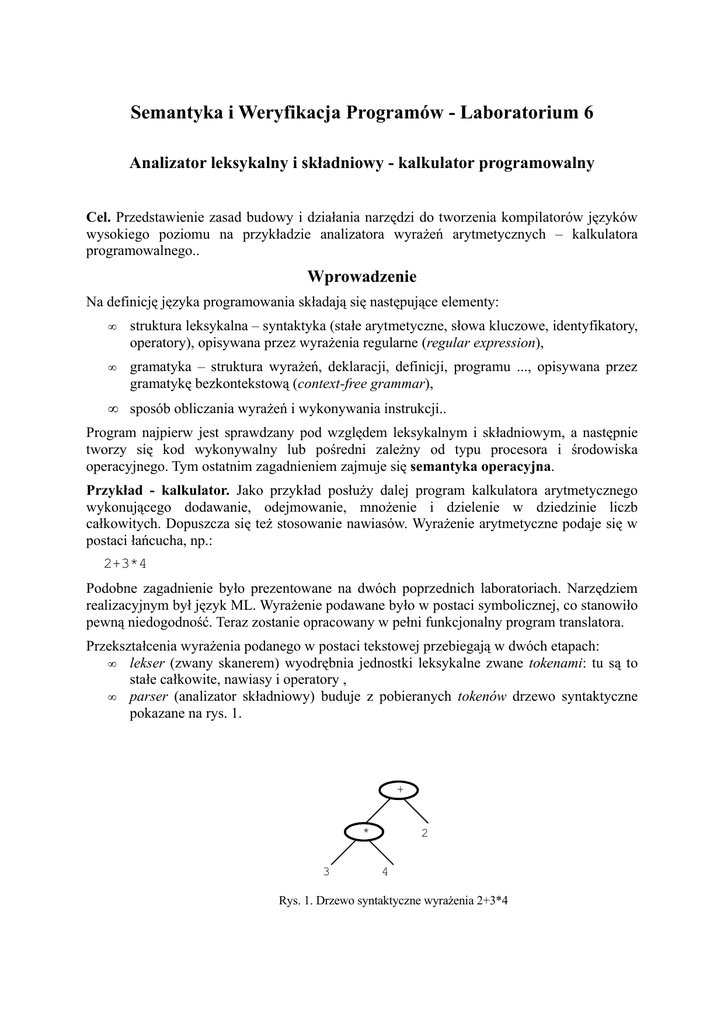 Rys. 1. Drzewo syntaktyczne wyrażenia 2+3*4