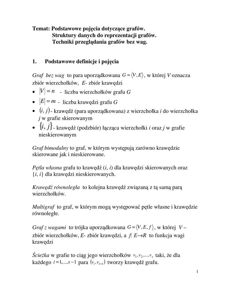 Temat: Podstawowe poj cia dotycz ce grafów.