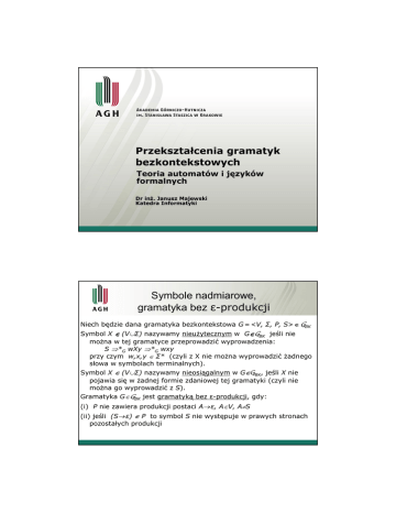 nieuŜytecznych oraz będącej gramatyką bez εprodukcji (w sensie powyŜszych definicji).