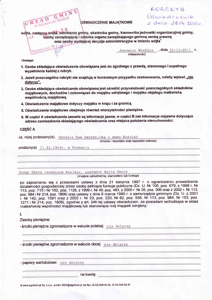 Ja' niżejpodpisany(a)'D a n i e 1 a E W a B e r e ź n i c k a