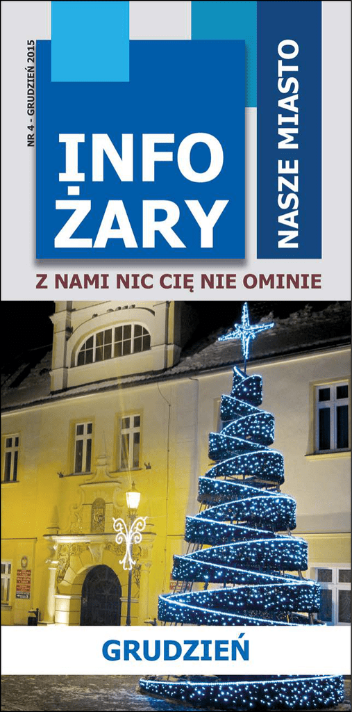 SPIS TREŚCI: ŻAK - Żarskie Aktualności Kulturalne 2 Urząd Miasta Żary 7 Miejski Ośrodek Pomocy Społecznej 14 Rozkład Jazdy Autobusów 16 Miejska Biblioteka Publiczna 18 Żarski Dom Kultury 22 Sport i Rekreacja 24 Muzeum Pogranicza Śląsko-Łużyckiego 25 Kino Pionier 26 Z okazji zbliżających się Świąt Bożego Narodzenia życzę Państwu wiele radości, ciepła, miłości, zdrowia oraz wszelkiej pomyślności. Niech będzie to niezapomniany czas niosący dobro i spokój, spędzony bez pośpiechu, trosk i zmartwień. A nadchodzący Nowy Rok 2016 spełni wszelkie oczekiwania i nadzieje, zarówno w życiu prywatnym jak i zawodowym. Z wyrazami szacunku Danuta Madej Burmistrz Miasta Żary Do życzeń dołączają się Radni Rady Miejskiej, Dyrektorzy i Pracownicy Samorządowych Instytucji Miasta Żary Urząd Miasta Żary ŻARY, ul. Rynek 1-5 tel. 68 470 83 00 www.zary.pl email:[email protected] aplikacja żary w twoim telefonie Chcesz wiedzieć co się dzieje w mieście? Wystarczy wejść do sklepu Play i bezpłatnie pobrać aplikację lub zeskanować z poniższego kodu QR! Przyjdź do pokoju nr 10 w Urzędzie Miejskim w Żarach, pokarz aplikację na swoim telefonie, a otrzymasz gadżet miejski! 7 INWESTYCJE Modernizacja nawierzchni boiska sportowego na ul. 9 Maja. Utwardzenie terenu przy Zespole Szkolno - Przedszkolnym z oddziałami integracyjnymi na ul. 9 Maja. Remonty pomieszczeń dydaktycznych, szatni i pomieszczeń sanitarnych na ul. 9 Maja. 9 INWESTYCJE Remont chodnika po obu stronach na ul. Kazimierza Wielkiego. Remont ul. Katowickiej przy bloku nr 2. Remont chodnika po prawej stronie na ul. Kasprzaka. żarski sektor 3 Misją Żarskiego Sektora 3, a zarazem głównym celem, jest wspieranie procesu budowy potencjału oraz rozwoju lokalnych organizacji pozarządowych. W tym celu jednym z działań Centrum Wsparcia organizacji pozarządowych jest udostępnianie zasobów kadrowych i rzeczowych podmiotom pożytku publicznego. Do dyspozycji przedstawicieli organizacji pozarządowych oddajemy pomieszczenie wraz ze stanowiskiem wyposażonym w komputer z dostępem do Internetu oraz drukarkę, z których będzie można skorzystać w dniach: Pon. 9:00 - 15:30 Wt. – Pt. 9:00 - 18:00 Sobota 10:00 - 14:00 Pomieszczenie znajduje się w Miejskiej Bibliotece Publicznej w Żarach, ul. Wrocławska 11, pokój nr 101, I piętro. PODATEK OD NIERUCHOMOŚCI Uwaga! Ważna informacja! W związku z nowelizacjami ustaw o podatku od nieruchomości, rolnego i leśnego zmieni się od 1 stycznia 2016 r.: • • w przypadku wymiaru podatku do 100 zł. płatność będzie jednorazowa w terminie do 15 marca 2015 r. gdy wymiar podatku nie przekroczy kwoty 7,00 zł nie trzeba będzie płacić tej należności. URZĄD Będzie Nieczynny Urząd Miejski w Żarach w dniu 24 grudnia 2015 r. (czwartek) będzie nieczynny. Miejski Ośrodek Pomocy Społecznej ŻARY, ul. Domańskiego 1 tel. 68 475 55 80 www.mops.zary.pl email:[email protected] 15 25-lecie MOPS 18 listopada 2015 r. odbyła się w sali „Luna” Żarskiego Domu Kultury uroczystość z okazji 25-lecia istnienia Miejskiego Ośrodka Pomocy Społecznej w Żarach. Święto swoje obchodzili również: Dzienny Dom Wsparcia oraz Warsztat Terapii Zajęciowej w Żarach, którzy istnieją 10 lat. Zaproszonych było wielu gości, m.in. Burmistrz Miasta Żary – Pani Danuta Madej oraz Wicestarosta Żarski – Pani Małgorzata Issel. Nie mogło zabraknąć Pana Stefana Łyskawy, byłego Kierownika MOPS-u, który piastował urząd nieprzerwanie przez 23 lata (1991-2013). Rozkład Jazdy Autobusów ŻARY PKP – ŻAGAŃ Kierunek: Godziny odjazdu ŻAGAŃ Rynek 06:15 F 09:05 F 12:10 Y 13:30 F 14:35 Sz 15:35 Sz 18:10 Fm 06:45 Cob 10:15 F 12:40 F 13:55 F 14:50 Sz 16:35 F 21:10 Fm 08:05 F6b 10:45 F 13:10 F 14:10 6b 15:25 Y 17:10 F OZNACZENIA KURSÓW: F - kursuje w dni robocze od poniedziałku do piątku poza 02.05 m - nie kursuje w dniach 24 i 31.XII Y - kursuje w dni robocze w okresie ferii letnich i zimowych oraz szkolnych przerw świątecznych C - kursuje w soboty, niedziele i święta o - kursuje dodatkowo 2 maja b - nie kursuje w dniu 1.I, w pierwszy dzień Świąt Wielkanocnych i w dniu 25 XII 6 - kursuje w soboty S - kursuje w dni nauki szkolnej z - nie kursuje w piątek po dniu Bożego Ciała Szanowni Państwo! Z okazji Międzynarodowego Dnia Wolontariatu składam najserdeczniejsze życzenia wszystkim, którzy poświęcają swój czas, zaangażowanie i wysiłek, bezinteresownie pomagając innym. Wasza postawa wypełniona wrażliwością i miłością do bliźnich jest godna naśladowania. Jest to bowiem cenny skarb, który procentuje wdzięcznością i zaufaniem. Życzę Wam spełnienia marzeń, realizacji zamierzonych celów, a przede wszystkim tego, aby każdy dobry uczynek i każde dobre słowo wracało do Was dając siłę do dalszej pracy. Mam nadzieję, że swoją otwartością i zaangażowaniem będziecie zarażać innych, a dzięki Wam i Waszej pracy, świat w którym żyjemy codziennie będzie stawał się lepszym. Z wyrazami szacunku Danuta Madej Burmistrz Miasta Żary Miejska Biblioteka Publiczna ŻARY, ul. Wrocławska 11 tel. 68 374 37 36 www.mbp.zary.pl email:[email protected] Link do przyszłości. Młodzi, Internet, Kariera 6 listopada 2015 r. w Pracowni multimedialnej MBP Żary odbyły się warsztaty programowania z wykorzystaniem robotów Finch. Spotkanie zostało zrealizowane dzięki udziałowi Miejskiej Biblioteki Publicznej w Żarach w trzeciej edycji projektu „Link do przyszłości. Młodzi, Internet, Kariera”. Jest to przedsięwzięcie Fundacji Rozwoju Społeczeństwa Informacyjnego, realizowane dzięki środkom firmy Microsoft i Polsko-Amerykańskiej Fundacji Wolności. 19 Spotkanie autorskie z Daną Newelską Poznajcie smoka Bajtusia MBP zaprasza na wystawę prac plastycznych uczniów szkół podstawowych z Żar, uczestników konkursu na postać smoka Bajtusia. Konkurs jest związany jest z realizowanym przez MBP Żary projektem granto