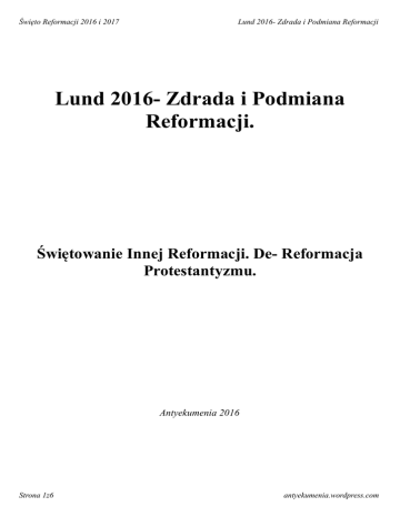 Lund 2016- Zdrada i Podmiana Reformacji.