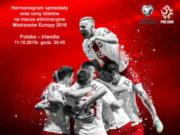 Harmonogram sprzedaży oraz ceny biletów na mecze eliminacyjne Mistrzostw Europy 2016 Polska – Irlandia 11.10.2015r. godz. 20:45 Kategorie biletów oraz ceny Pierwszy raz na mecz z Kartą Kibica? Bilet 25zł taniej. Kat. biletu / mecz Polska – Irlandia 11.10.2015r. godz. 20:45 Bilet kategorii I 200 zł Bilet kategorii II 160 zł Bilet kategorii III 100 zł Bilet rodzinny: opiekun + dziecko do 12lat (włącznie) Osoby z niepełnosprawnościami na wózku inwalidzkim wraz z opiekunem 80 zł + 30 zł 60 zł Harmonogram sprzedaży biletów Sierpień 2015 Poniedziałek Wtorek Środa Czwartek Piątek Sobota Niedziela 3 6 5 6 7 8 9 10 11 12 13 14 15 16 17 Faza I 18 19 20 21 22 23 24 25 26 Faza II 27 28 29 30 31 Faza I Pojedynczy bilet tylko dla posiadaczy Karty Kibica Faza II Pojedynczy bilet sprzedaż otwarta dla wszystkich Sprzedaż będzie prowadzona tylko w Internecie poprzez portal www.kupbilet.pl Bilety będą dostępne do wydrukowania na z Irlandią po 18.09.2015 r. Harmonogram sprzedaży biletów Wrzesień 2015 Poniedziałek Wtorek Środa Czwartek Piątek Sobota Niedziela 1 2 3 GER – POL 4 20:45 5 6 POL – GIB 7 20:45 8 9 10 11 12 13 14 15 16 17 18 19 20 21 22 23 24 25 26 27 28 29 30 Październik 2015 Poniedziałek Wtorek 5 Faza II Środa 6 Czwartek 7 Piątek Sobota Niedziela 1 2 3 4 SCO – POL 8 20:45 9 10 POL – IRL 11 20:45 Pojedyncze mecze sprzedaż otwarta dla wszystkich Sprzedaż będzie prowadzona tylko w Internecie poprzez portal www.kupbilet.pl Bilety będą dostępne do wydrukowania na mecz z Irlandią po 18.09.2015 r. Nie będzie prowadzona sprzedaż w kasach stadionu. Bądźmy razem z biało-czerwonymi!