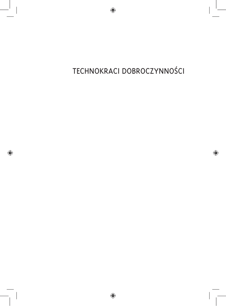 TECHNOKRACI DOBROCZYNNOSCI Książkę dedykuję promotorce mojego doktoratu, dr hab. Barbarze Fatydze, która wcześniej niż ja uwierzyła, że to się uda, i mojej Mamie, która zawsze była gotowa rozmawiać ze mną na każdy ważny temat. Magdalena Dudkiewicz TECHNOKRACI DOBROCZYNNOSCI Samoswiadomosc spoleczna pracowników organizacji pozarzadowych Projekt graficzny okładki i stron tytułowych Jakub Rakusa-Suszczewski Redaktor prowadzący Paulina Martela Redakcja Małgorzata Żakowska-Kasprzewska Redakcja techniczna Zofia Kosińska Korekta Elwira Wyszyńska Skład i łamanie Dariusz Górski Copyright by Wydawnictwa Uniwersytetu Warszawskiego, Warszawa 2009 ISBN 978-83-235-0525-9 Publikacja dofinansowana ze środków Instytutu Stosowanych Nauk Społecznych UW Wydawnictwa Uniwersytetu Warszawskiego 00-497 Warszawa, ul. Nowy Świat 4 http:// www.wuw.pl; e-mail: [email protected] Dział Handlowy WUW: tel. (0 48 22) 55-31-333; e-mail: [email protected] Księgarnia internetowa: http://www.wuw.pl/ksiegarnia Druk i oprawa Na nasze nieszczęście wygraliśmy Lech Wałęsa, 4 czerwca 1989 Jako słaby, choć czasem rozległy kraj peryferyjny szliśmy zawsze drogą wytyczoną przez innych, czasem z lepszym, czasem z gorszym skutkiem, zawsze jednak w znacznej odległości za naszym europejskim „centrum”. Edmund Mokrzycki, 1999 Spis treści Spis treści WSTĘP . . . . . . . . . . . . . . . . . . . . . . . . . . . . . . . . . . . . . . . . . 13 CZĘŚĆ PIERWSZA Inspiracje teoretyczne: pojęcia i teorie organizujące badania Rozdział 1. Społeczeństwo obywatelskie i trzeci sektor . . . . . . . . . . 23 1. Społeczeństwo obywatelskie a zaangażowanie społeczne . . . . . . . . . . . . . 24 2. Miejsce trzeciego sektora w społeczeństwie obywatelskim . . . . . . . . . . . . 27 3. Pojęcia: „trzeci sektor” i „organizacja pozarządowa” . . . . . . . . . . . . . . . 31 Rozdział 2. Teorie Roberta K. Mertona: grupy odniesienia i typy indywidualnego przystosowania. . . . . . . . . . . . . . . . . . . . . . . . . 38 1. Grupy odniesienia . . . . . . . . . . . . . . . . . . . . . . . . . . . . . . . . . . 38 2. Typy indywidualnego przystosowania . . . . . . . . . . . . . . . . . . . . . . . . 42 Rozdział 3. Opozycja „centrum–peryferie” jako oś postrzegania świata społecznego. . . . . . . . . . . . . . . . . . . . . . . . . . . . . . . . . 44 Rozdział 4. Teorie wymiany społecznej . . . . . . . . . . . . . . . . . . . . . 50 1. 2. 3. 4. Ekonomiczne aspekty wymiany . . . . . . . . . . . . . . . . . . . . . . . . . Wymiana w relacjach między państwem a trzecim sektorem . . . . . . . . Konsekwencje zasady wzajemności: problematyka wymiany jednostronnej . Wrogość jako konsekwencja źle zorganizowanej wymiany . . . . . . . . . . . . . . . . . . 51 53 55 59 8 Spis treści CZĘŚĆ DRUGA Metodologia Rozdział 1. Przedmiot badań . . . . . . . . . . . . . . . . . . . . . . . . . . . 63 1. Operacjonalizacja głównych pojęć wyznaczających przedmiot badań . . 2. Kryteria doboru organizacji do badań . . . . . . . . . . . . . . . . . . . 2.1. Kryteria formalne . . . . . . . . . . . . . . . . . . . . . . . . . . . . 2.1.1. Kryterium co najmniej trzyletniej działalności . . . . . . . . 2.1.2. Kryterium rejestracji po 1989 roku . . . . . . . . . . . . . . 2.1.3. Kryterium równych szans . . . . . . . . . . . . . . . . . . . 2.1.4. Kryterium dostępności organizacji i informacji na jej temat 2.2. Kryteria merytoryczne . . . . . . . . . . . . . . . . . . . . . . . . . 2.2.1. Kryterium terytorialne . . . . . . . . . . . . . . . . . . . . . 2.2.2. Kryterium wielkości organizacji . . . . . . . . . . . . . . . . 2.2.3. Kryterium dziedzin aktywności . . . . . . . . . . . . . . . . 3. Dobór respondentów w ramach wybranych organizacji . . . . . . . . . . . . . . . . . . . . . . . . . . . . . . . . . . . . . . . . . . . . . . . . . . . . . . . . . 63 69 70 71 71 72 73 73 73 76 78 81 Rozdział 2. Schemat badania terenowego – metody i techniki zbierania danych . . . . . . . . . . . . . . . . . . . . . . . . . . . . . . . . . . . . . . . . 84 1. Konstrukcja, zakres i realizacja wywiadów 1.1. Charakterystyka wywiadu . . . . . . . 1.2. Scenariusz wywiadu . . . . . . . . . . 2. Rola obserwacji . . . . . . . . . . . . . . . 3. Rola i dobór materiałów pisanych . . . . . . . . . . . . . . . . . . . . . . . . . . . . . . . . . . . . . . . . . . . . . . . . . . . . . . . . . . . . . . . . . . . . . . . . . . . . . . . . . . . . . . . . . . . . . . . . . . . . . . . . . 84 84 87 89 90 Rozdział 3. Metody analizy materiału badawczego . . . . . . . . . . . . . 92 1. Metoda opisowo-ilustracyjna . . . . . . . . . . . . . . . . . . . 1.1. Analiza aspektów . . . . . . . . . . . . . . . . . . . . . . . 1.2. Charakterystyka grupy badanej . . . . . . . . . . . . . . . 2. Analiza pól semantycznych . . . . . . . . . . . . . . . . . . . . 2.1. Prezentacja metody . . . . . . . . . . . . . . . . . . . . . . 2.2. Dwa typy modyfikacji metody . . . . . . . . . . . . . . . . 2.2.1. Odstępstwa od metody . . . . . . . . . . . . . . . . 2.2.2. Rozwinięcie metody . . . . . . . . . . . . . . . . . 2.3. Podmioty pól semantycznych (słowa-klucze) i ich aspekty interpretacyjne . . . . . . . . . . . . . . . . . . . . . . . . 2.4. Omówienie analizowanych pól semantycznych . . . . . . 2.4.1. Analiza pola „działanie w organizacji” . . . . . . . 2.4.2. Analiza pozostałych pól semantycznych . . . . . . 2.4.2.1. Założenia ogólne . . . . . . . . . . . . . . 2.4.2.2. Rozstrzygnięcia szczegółowe . . . . . . . . 3. Analiza wizji świata: glosy . . . . . . . . . . . . . . . . . . . . . . . . . . . . . . . . . . . . . . . . . . . . . . . . . . . . . . . . . . . . . . . . . . . . . . . . . . . . . . . . . . . . . . 95 . 95 . 96 . 97 . 98 101 101 103 . . . . . . . . . . . . . . . . . . . . . . . . . . . . . . . . . . . . . . . . . . . . . . . . . . . . . . . . 104 106 106 106 106 109 111 9 Spis treści CZĘŚĆ TRZE