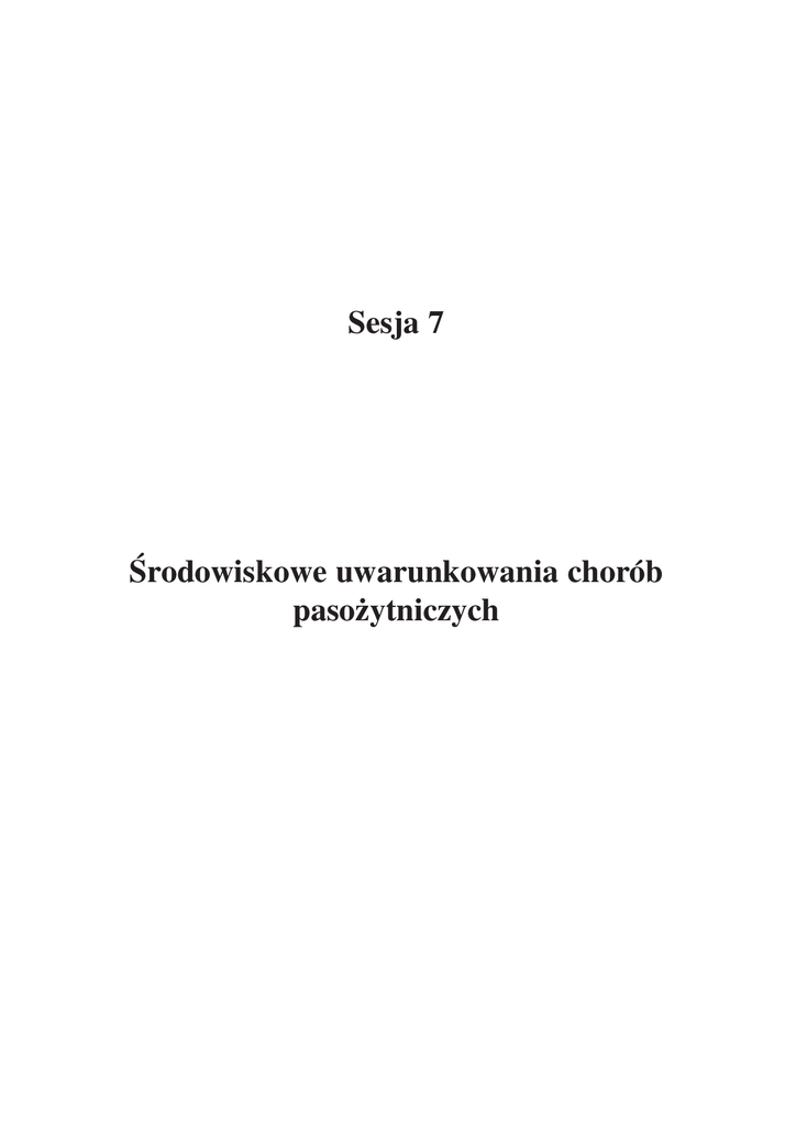 Sesja 7 Środowiskowe uwarunkowania chorób pasożytniczych