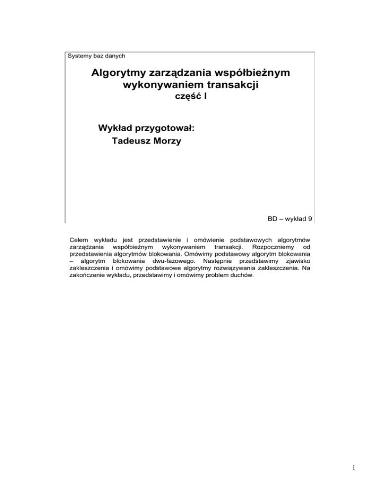 Algorytmy zarządzania współbieżnym wykonywaniem transakcji