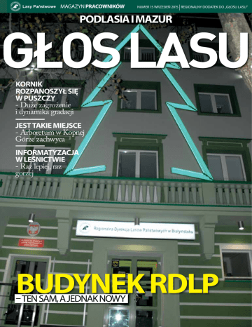 MAGAZYN PRACOWNIKÓW | NUMER 15 WRZESIEŃ 2015 REGIONALNY DODATEK DO „GŁOSU LASU” PODLASIA I MAZUR KORNIK ROZPANOSZYŁ SIĘ W PUSZCZY - Duże zagrożenie i dynamika gradacji JEST TAKIE MIEJSCE - Arboretum w Kopnej Górze zachwyca INFORMATYZACJA W LEŚNICTWIE - Raz lepiej, raz gorzej BUDYNEK RDLP – TEN SAM, A JEDNAK NOWY NASZE SPRAWY Kornik rozpanoszył się w puszczy Regionalna Dyrekcja Lasów Państwowych w Białymstoku „GŁOS LASU PODLASIA I MAZUR” JEST DODATKIEM REGIONALNYM DO MAGAZYNU „GŁOS LASU” WYDAWANEGO PRZEZ CENTRUM INFORMACYJNE LASÓW PAŃSTWOWYCH REDAKTOR WYDANIA: Jarosław Krawczyk ADRES REDAKCJI: RDLP w Białymstoku, ul. Lipowa 51, 15-950 Białystok, tel. 85 7481 860, 85 7481 817 e-mail: [email protected] www.bialystok.lasy.gov.pl G ŁÓWNĄ OBECNEJ PRZYCZYNĄ skali gradacji kornika drukarza w Puszczy Białowieskiej są ograniczenia w prowadzeniu gospodarki leśnej w drzewostanach w młodszych niż 100 lat. Według zapisów planu urządzenia lasu Nadleśnictw Białowieża, Browsk i Hajnówka, obowiązującego od 2012 roku, w drzewostanach ponad 100-letnich oraz na siedliskach bagiennych i wilgotnych nie prowadzi się pozyskania drewna i tym samym nie usuwa się zasiedlonych świerków. Prowadzone przez leśników działania zwalczania korników na części obszaru Puszczy Białowieskiej, przy przemieszaniu drzewostanów w wieku do 100 lat i starszych, w których nie prowadzi się prac, są z natury mało skuteczne. Dlatego skutki gradacji korników przy obecnych dodatkowych uwarunkowaniach, takich jak: susza, duży udział drzewostanów osłabionych ponad 100-letnich oraz wiele czynnych ognisk gradacyjnych, są ogromne. Obecne zagrożenie i dynamika gradacji obserwowana na początku rójki ma swoją historię w latach poprzednich. Jest to pokłosie zapisów w PUL na lata 2012 - 2021, uniemożliwiających podejmowanie skutecznego ograniczania liczebności kornika drukarza poprzez usuwanie drzew zasiedlonych w niektórych drzewostanach. Pokazuje to wykres na str. 8, przedstawiający występowanie drzew zasiedlonych w lasach gospodarczych w Puszczy Białowieskiej do chwili wprowadzenia planu urządzenia lasu w 2012 roku i co działo się z drzewami zasiedlonymi w kolejnych latach. W roku 2012 pozostawiono w Puszczy 10 242 szt. zasiedlonych świerków o masie 16 141 m3, co spowodowało masowy rozwój kornika drukarza w latach następnych. Od maja 2012 roku do 24 sierpnia 2015 zainwentaryzowano w Puszczy Białowieskiej 361 tys. zasiedlonych świerków o masie 521 tys. m3, w tym pozyskano w drzewostanach w wieku do 100 lat 72,192 tys. szt. zasiedlonych świerków o masie około 71,2 tys. m3. Gradacja kornika drukarza w Puszczy Białowieskiej i brak zgody na prowadzenie przez leśników skutecznych działań ratunkowych, doprowadziła do rozpadu drzewostanów z udziałem świerka na powierzchni 2 859 ha (według formularza nr. 3 Instrukcji Ochrony Lasu). KRZYSZTOF ONISZCZUK, Naczelnik Wydziału Ochrony Ekosystemów RDLP w Białymstoku 2 | PODLASIA I MAZUR GŁOS LASU | WRZESIEŃ 2015 SKŁAD, ŁAMANIE I REDAKCJA TEKSTÓW ORAZ PRZYGOTOWANIA DO DRUKU: Polska Press Sp. z o.o. Oddział w Białymstoku, ul. św. Mikołaja 1, 15-419 Białystok www.polskapress.pl PROJEKT: Novimedia Content Publishing www.novimedia.pl DRUK: Zakład Poligraficzny Techgraf ZDJĘCIE NA OKŁADCE: Budynek RDLP – ten sam, a jednak nowy. Na zdjęciu okładce: Ponad 50. letni budynek biura RDLP w Białymstoku, ul. Lipowa 51 - Fot. Jarosław Krawczyk AUTORZY TEKSTÓW W NUMERZE: Iwona Zinkiewicz – Nadleśnictwo Supraśl Paweł Szczygielski – Nadleśnictwo Bielsk Maria Nowicka-Szpakowicz- RDLP w Białymstoku Krzysztof Oniszczuk- RDLP w Białymstoku Bronisław Korycki – RDLP w Białymstoku Jarosław Krawczyk - RDLP w Białymstoku AKTUALNOŚCI Budynek biura RDLP w Białymstoku niby ten sam, ale jednak nowy Ocieplone ściany budynku, zainstalowane ogniwa fotowoltaiczne zasilające komputery, drukarki i skanery sprawiły, że gmach „Lasów” jest ekologiczny, oszczędny i promuje nowoczesny styl. O KOŁO PÓŁTORA MILIONA złotych wydanych na modernizację budynku biura Regionalnej Dyrekcji Lasów Państwowych w Białymstoku przełożyło się na efekt ekologiczny. Dzięki poszerzeniu ścian piwnic, ich ociepleniu, nałożeniu na nie izolacji przeciwwilgociowej, ociepleniu ścian budynku 15 centymetrową warstwą styropianu i zamontowaniu na dachu 92 paneli fotowoltaicznych, z których każdy ma moc 250W, budynek „Lasów” będzie oszczędny, ponieważ będzie gromadził ciepło, zmniejszy moc dostarczanego ciepła z Miejskiego Przedsiębiorstwa Energetyki Cieplnej o blisko 42% dotychczasowego zapotrzebowania, ale również przetworzy energię emitowaną przez słońce na prąd elektryczny o mocy 23kW. I właśnie dzięki temu prądowi dostarczanemu ze słońca pracować będzie kilkadziesiąt komputerów w biurze Regionalnej Dyrekcji Lasów Państwowych w Białymstoku. Pomysł na utworzenie biura Lasów Państwowych w Białymstoku pojawił się tuż przed II wojną światową. W 1938 roku rząd wprowadził korekty granic i obszarów niektórych województw. W ślad za tym również w Lasach Państwowych skorygowano dotychczasowy podział na okręgi dyrekcyjne. W konsekwencji zmian w drugiej połowie 1938 roku podjęto decyzję o przeniesieniu biura Dyrekcji Lasów Państwowych z Białowieży do Białegostoku. Brano wtedy pod uwagę dwie lokalizacje siedziby biura w mie- ście. Pierwotnie miało to być miejsce przy ulicy Podleśnej, w którym dzisiaj stoi budynek Filharmonii Białostockiej, jednak ostatecznie biuro miało stanąć na działce u zbiegu dzisiejszych ulic Świętojańskiej i Mickiewicza, naprzeciwko znanej galerii handlowej. Niestety wybuch drugiej wojny światowej przerwał zamierzenia leśników. Obecna lokalizacja biura Regionalnej Dyrekcji Lasów Państwowych w Białymstoku – spadkobierczyni Dyrekcji Lasów Państwowych w Białowieży - mieści się w centrum regionu i w ce