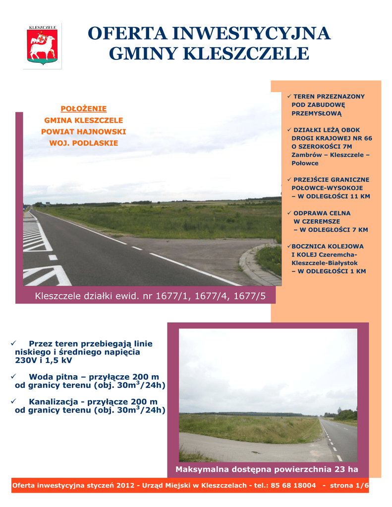 OFERTA INWESTYCYJNA GMINY KLESZCZELE