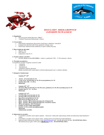 regulamin zawodów - Stowarzyszenie Szkoła Pływania "Orka"