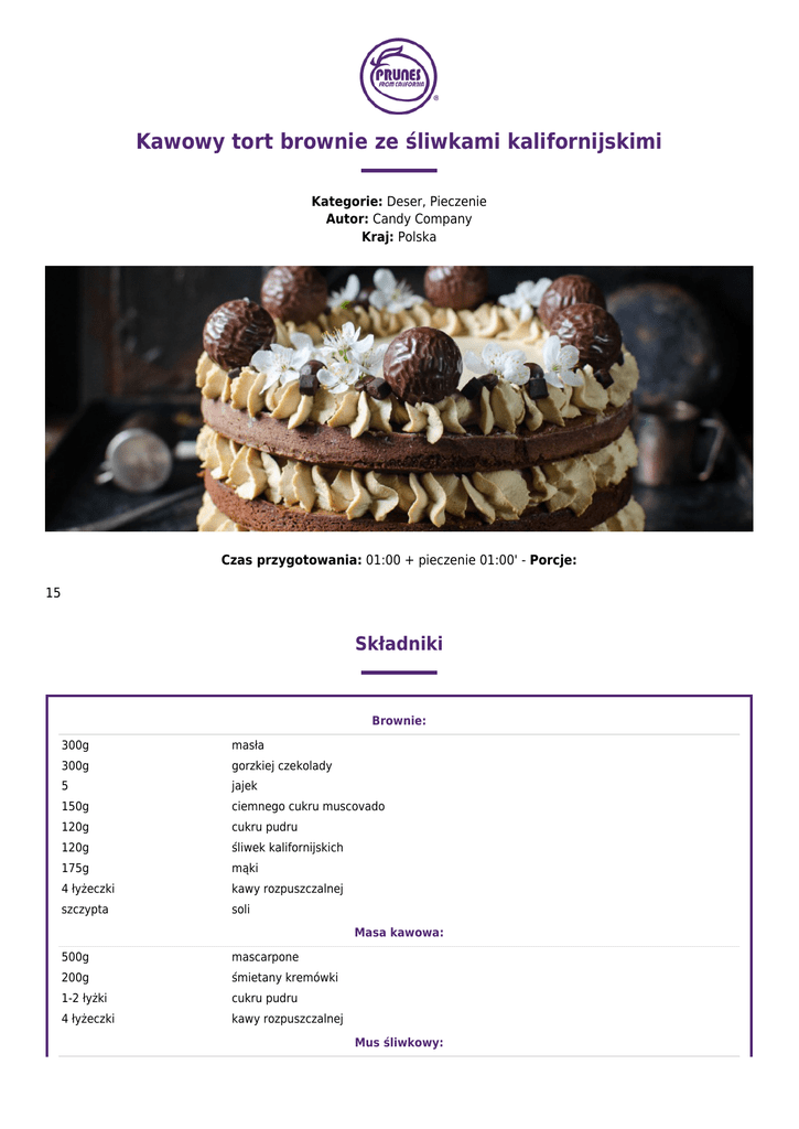 Kawowy tort brownie ze śliwkami kalifornijskimi