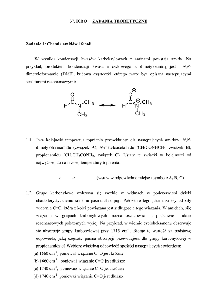1.1. Jaką kolejność temperatur topnienia przewidujesz dla następujących amidów: N,Ndimetyloformamidu (związek A), N-metyloacetamidu (CH3CONHCH3, związek B),
