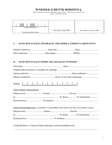 wniosek o rentę rodzinną - Wojskowe Biuro Emerytalne w Krakowie