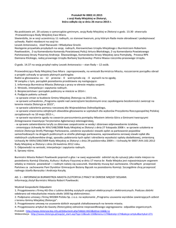 Protokół Nr 0002.VI.2015 z sesji Rady Miejskiej w Złotoryi, która