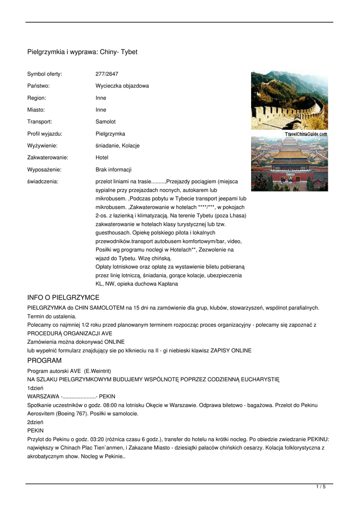 PIELGRZYMKA do CHIN SAMOLOTEM na 15 dni na zamówienie dla grup, klubów, stowarzyszeń, wspólnot parafialnych.