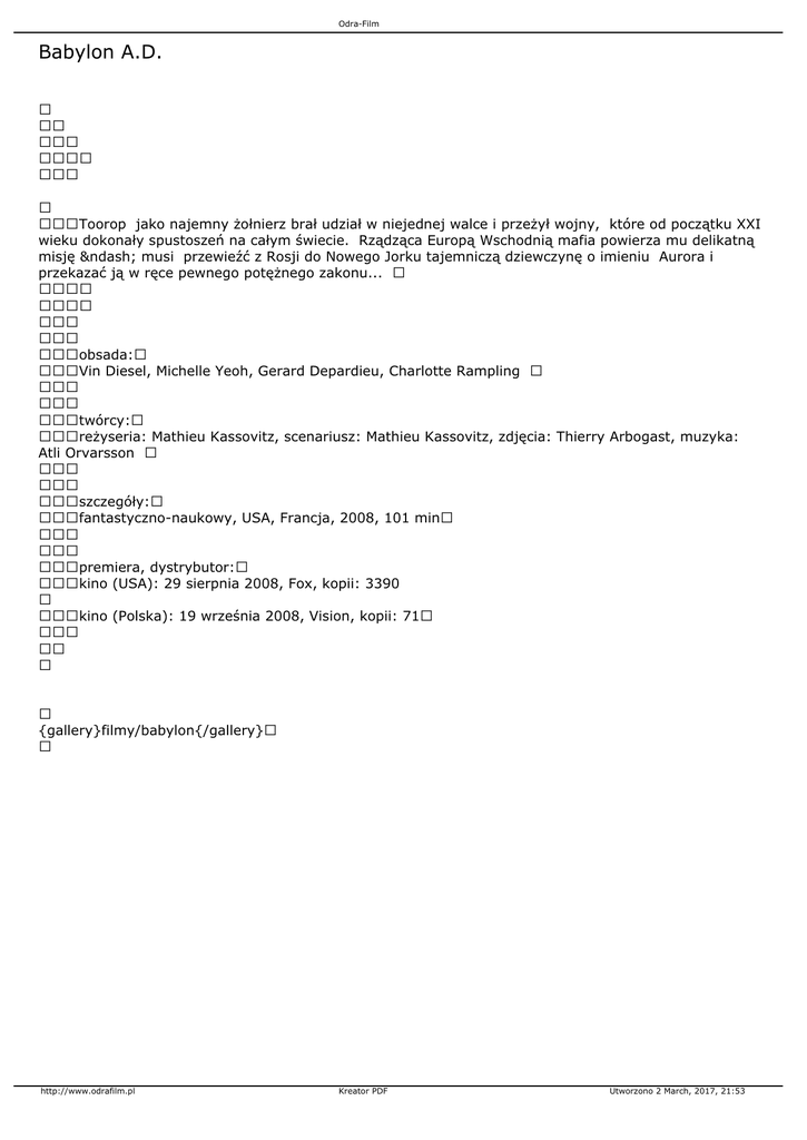 Vin Diesel, Michelle Yeoh, Gerard Depardieu, Charlotte Rampling twórcy:
