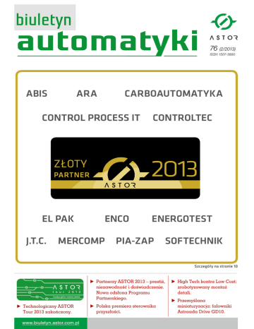 76 (2/2013) ISSN 1507-3890 abis ARA CARBOAUTOMATYKA Control ProcesS it ControLtec El pak ENergotest J.T.C. ENCO MErcomp pia-zap softechnik Szczegóły na stronie 10 XX Partnerzy ASTOR 2013 – prestiż, niezawodność i doświadczenie. Nowa odsłona Programu Partnerskiego. XX Technologiczny ASTOR Tour 2013 zakończony. www.biuletyn.astor.com.pl XX Polska premiera sterownika przyszłości. XX High Tech kontra Low Cost: zrobotyzowany montaż detali. XX Przemyślana miniaturyzacja: falowniki Astraada Drive GD10. w numerze 2 Biuletyn Automatyki 76 (2/2013) www.biuletyn.astor.com.pl w numerze aktualności Technologiczny astor Tour 2013 zakończony 5 Polska premiera sterownika przyszłości na ASTOR Tour 2013 6 System CMMS Profesal Maintenance wspiera Utrzymanie Ruchu w firmie MC Bauchemie 6 ASTOR ogłasza nową strategię rozwoju 2013+ 7 Wyż pozytywnej energii na skałkach z ASTORem 8 Z ASTORem i automatyką w służbie Lean Management 8 SATELLINE EASy PRO – radiomodemy z mocą nadawczą od 5 W do 35 W 9 Partnerzy ASTOR 2013 – prestiż, niezawodność i doświadczenie 10 nowe produkty XL7e – Nowy sterownik Horner APG w rodzinie XL 12 Przemyślana miniaturyzacja. Przemienniki częstotliwości ASTRAADA DRIVE GD10 14 Elastyczne zarządzanie produkcją wsadową. Wonderware InBatch 2012 R2 16 Historian 2012 R2(ndant) czyli bezpieczeństwo w nowej odsłonie 18 technologie, produkty, zastosowania Zrobotyzowany montaż elementów uszczelniających. High Tech kontra Low Cost 20 Technologie Wonderware w fabryce pralek. Efektywne, zautomatyzowane zbieranie i analiza parametrów OEE 23 VersaMax Micro – japońska jakość w klasie mikro PLC 26 pod lupą Konfigurowanie urządzeń na sieci Profinet w kontrolerach serii RXi 28 Panele operatorskie serii Astraada HMI. Logowanie zdarzeń i operacji produkcyjnych 32 akademia astor Terminarz szkoleń technicznych Akademii ASTOR 34 ostatnie strony www.biuletyn.astor.com.pl Automatocentryzm … ?! 38 Ludzie ASTORa – Barbara Cebo 39 Biuletyn Automatyki 76 (2/2013) 3 aktualności Szanowni Państwo, Mamy w maju i czerwcu bardzo niestabilną pogodę. Atakują nas uciążliwe deszcze i złowrogie burze. Tym bardziej cieszy fakt, że takie wydarzenia, jak majowe wspinaczkowe zawody na skałkach – IV Memoriał Andrzeja Skwirczyńskiego, wspierany przez ASTORa – odbywają się przy nagle pięknej pogodzie. Przypominam, że ta sama sytuacja była podczas marcowego ASTOR Winter Cup – niedziela przeznaczona na zawody narciarskie zrobiła się nagle przyjemna i słoneczna, po sobotnim deszczu na zmianę z mżawką. To stwarza dobre podejrzenie, że ktoś efektywnie umie – prawdziwym, nieudawanym entuzjazmem i opty- Redaktor naczelny: Joanna Kowalkowska DTP: Looz Design DTP@looz–design.pl Prenumerata: [email protected] Adresy email do pracowników firmy ASTOR mają postać: [email protected] Wydawca: ASTOR Sp. z o.o. ul. Smoleńsk 29 31-112 Kraków tel. 12 428 63 70 fax 12 428 63 79 [email protected] www.astor.com.pl mizmem – zapanować nad pogodą! To nie czary, tylko przepływ Druk: Drukarnia Know–How Kraków, tel. 12 622 85 70 Nakład: 7500 egz. Numer zamknięto: 07.06.2013 Najnowszy numer Biuletynu pokazuje, jak efektywne jest wspólne Redakcja zastrzega sobie prawo do adiustacji i skracania tekstów, oraz do zmiany tytułów. Wszelkie prawa autorskie zastrzeżone. dobrej energii. ASTOR tak ma. Takie rzeczy tylko z ASTORem ☺ działanie z Partnerami na rynku automatyki (lista niezawodnych 11 Złotych Partnerów mówi sama za siebie), współpraca w propagowaniu nowoczesnych technologii (3400 km przejechanych Przedruk tekstów oraz udostępnianie ich w mediach elektronicznych wymaga zgody redakcji. przez ekspertów ASTOR Tour 2013) czy transferze dobrych praktyk i doświadczeń (dla ponad 1000 osób na Konferencji Lean). Prezentujemy także nowe produkty – PACSystems RXi Controller (str.6), XL7e (str. 12), falowniki Astraada Drive serii GD10 (str.14) oraz opisujemy skuteczne rozwiązania – elastyczne zarządzanie produkcją wsadową (str. 16), zautomatyzowane zbieranie danych maszynowych i operacyjnych w fabryce pralek (str. 23), czy zrobotyzowany montaż detali, który dzięki zastosowaniu pionierskiego systemu pozwala na zwycięstwo inteligentnej automatyki w konfrontacji z manualnym montażem w krajach o niskich kosztach pracy (str. 20). Nowością tego numeru jest Terminarz szkoleń technicznych Akademii ASTOR z zakresu oprogramowania, robotów Kawasaki i przemysłowych systemów sterowania. Będziemy go prezentować cyklicznie, zachęcając Państwa do regularnego inwestowania w wiedzę. A inwestycję w ekonomiczne rozwiązania w zakresie automatyki mogą Państwo zaplanować na stronie sklepu ASTOR24.pl, gdzie w ramach promocji oferujemy bardzo atrakcyjne cenowo zestawy startowe. ASTOR Kraków ul. Smoleńsk 29; 31-112 Kraków tel. 12 428 63 60; fax 12 428 63 69 e-mail: [email protected] ASTOR Poznań ul. Żniwna 4; 61-663 Poznań tel. 61 871 88 00; fax 61 871 88 09 e-mail: [email protected] ASTOR Warszawa ul. Stępińska 22/30 00-739 Warszawa tel. 22 569 56 50; fax 22 569 56 59 e-mail: [email protected] ASTOR Infel ul. Pierwszej Brygady 35; 73-110 Stargard Szczeciński tel. 91 578 82 80; fax 91 578 82 89 e-mail: [email protected] Joanna Kowalkowska Biuletyn Automatyki ASTOR Katowice ul. Ks. Bpa. Bednorza 2a-6; 40-384 Katowice tel. 32 355 95 90; fax 32 355 95 99 e-mail: [email protected] ASTOR Wrocław ul. Strachowskiego 12; 52-210 Wrocław tel. 71 332 94 80; fax 71 332 94 89 e-mail: [email protected] Zapraszam do lektury, 4 ASTOR Gdańsk ul. Polanki 12; 80-308 Gdańsk tel. 58 554 09 00; fax 58 554 09 09 e-mail: [email protected] 76 (2/2013) www.biuletyn.astor.com.pl aktualności TECHNOLOGICZNY ASTOR TOUR 2013 zakończony Wśród tegorocznych wydarzeń poświęconych nowoczesnym technologiom na szczególną uwagę zasługuje ASTOR Tour 2013. Jest to jedyny tego typu cykl seminariów dla przemysłu, w trakcie którego uczestnicy zaponiami z 