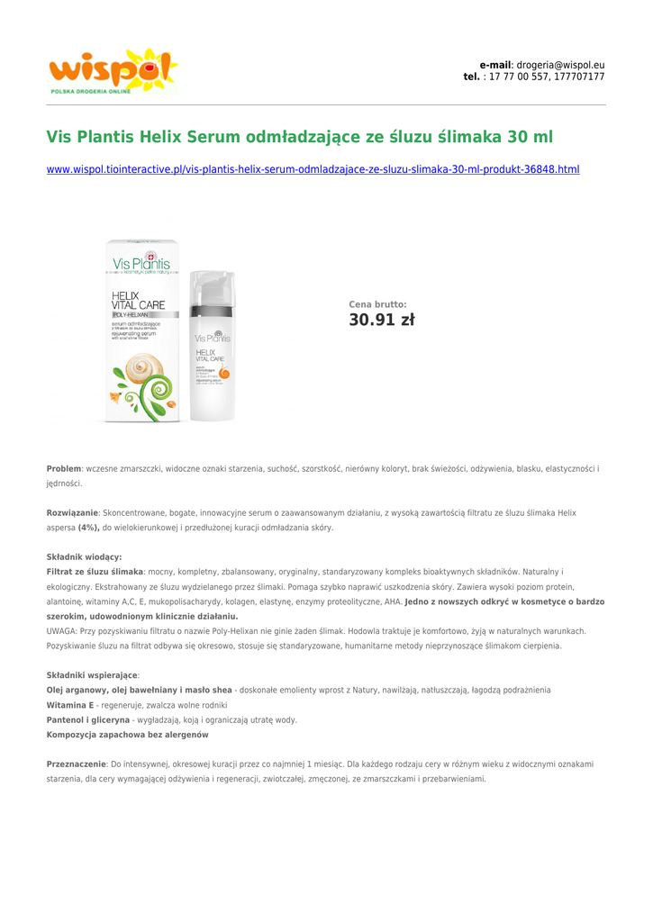 Vis Plantis Helix Serum odmładzające ze śluzu ślimaka 30