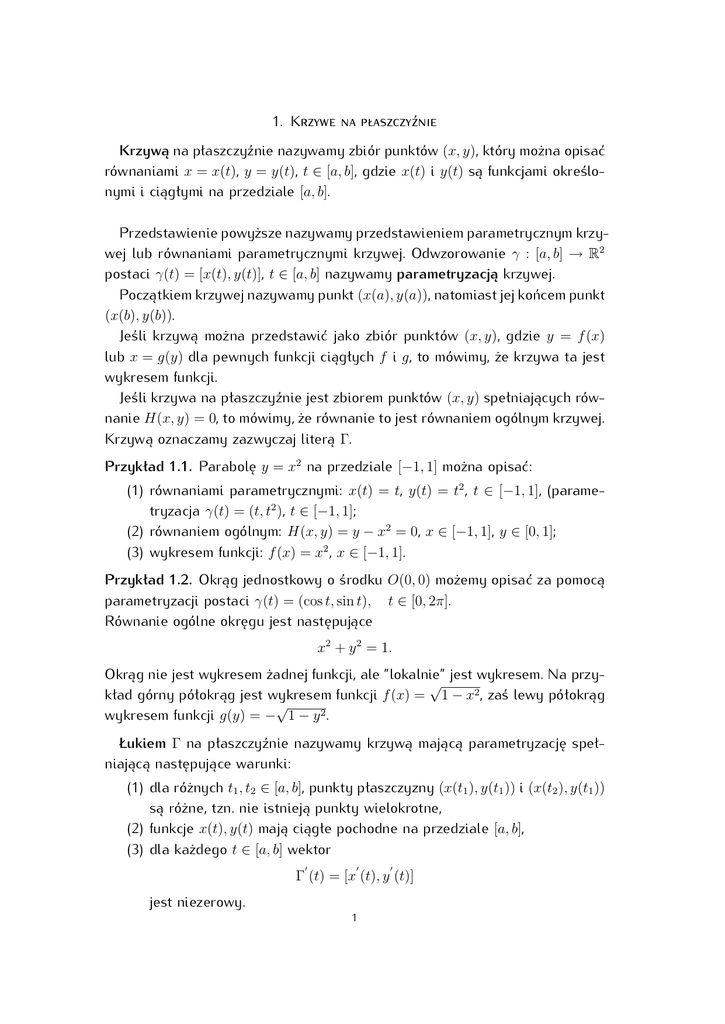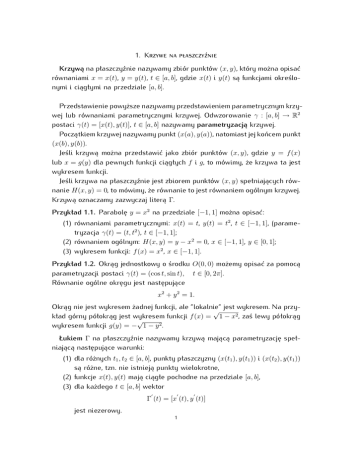 1. K Krzywą na płaszczyźnie nazywamy zbiór punktów (x, y), który
