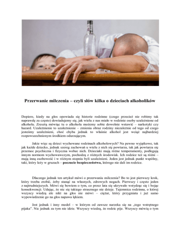 Przerwanie milczenia – czyli słów kilka o dzieciach alkoholików Dopiero, kiedy na głos opowiada się historie rodzinne (czego przecież nie robimy tak naprawdę za często) dowiadujemy się, jak wielu z nas miało w rodzinie osoby uzależnione od alkoholu. Zresztą mówiąc tu o alkoholu możemy sobie dowolnie wstawić – narkotyki czy hazard. Uzależnienie to uzależnienie – zmienia obraz rodziny niezależnie od tego od czego jesteśmy uzależnieni, choć chyba jednak to właśnie alkohol jest wciąż najbardziej rozpowszechnionym środkiem odurzającym. Jakie więc są dzieci wychowane rodzinach alkoholowych? Na pewno wyjątkowe, tak jak każde dziecko, jednak szereg zachowań u wielu z nich się powtarza, tak jak powtarza się przemoc psychiczna i fizyczna wobec nich. Dzieciaki mają różne temperamenty, podlegają innym normom wychowawczym, pochodzą z różnych środowisk. Ich rodzice też są różni – mają inną osobowość i w różnym stopniu byli uzależnieni. Jeden jest jednak punkt wspólny, taki, który leży w gruzach – poczucie bezpieczeństwa, którego nie dali im rodzice. Dlaczego jednak ten artykuł mówi o przerwaniu milczenia? Bo to jest pierwszy krok, który trzeba zrobić, żeby stanąć na własnych, zdrowych nogach. Pierwszy i często jeden z najtrudniejszych. Mówi się bowiem o tym, co przez lata się ukrywało wstydząc się i bojąc konsekwencji. Udając, że nic się takiego strasznego nie dzieje. Tajemnica rodzinna, o której wszyscy wiedzą ale nikt na głos nie mówi – ciężar, który przygniata i już samo wypowiedzenie go na głos napawa lękiem. Jest jednak i inny model – w którym od zawsze narzeka się na „tego wstrętnego pijaka”. Nic jednak za tym nie idzie. Wszyscy wiedzą, że rodzic pije. Wszyscy mówią o tym na głos. O tym co zrobił, czego nie zrobił, ale nikt nie mówi o uczuciach, które się z tym wiążą, nikt nie pyta dziecka jak się z tym czuje, nikogo nie obchodzi to co się z nim dzieje. Obie postawy to ułuda, tworzenie systemu, który zamiata problem, z którym nikt nic nie robi. A tam jest ból, rozpacz, złość i samotność. Przeogromne poczucie osamotnienia. I tak dziecko dorastając uczy się sposobów na oszukiwanie samego siebie – jak przeżyć bez odczuwania tych trudnych emocji, jak dać sobie radę, jak udawać, że wszystko jest w porządku. I tak rodzi się zaprzeczanie przed samym sobą. Milczenie nawet wobec siebie. Czasem coś z takiego dzieciaka „wyjdzie”, czasem z czymś sobie nie poradzi, ale za chwilę znów zamyka to w sobie, żeby stres, strach nie obezwładniały, żeby można było dalej funkcjonować. Po czym można poznać, że zaprzeczanie jest nie sposobem na radzenie sobie z trudami dnia codziennego a zasłoną milczenia, która jest stworzona przez rodzinę by udawać, że nie ma problemu? Zapytaj siebie co czujesz, gdy ktoś zapyta o picie Twojego rodzica. Czy pojawia się niechęć? Czy blokujesz emocje, kiedy zaczyna się rozmowa o piciu? Jeden z podręczników na temat pracy nad sobą, dzieckiem alkoholika (osobą dorosłą), mówi o 4 poziomach zaprzeczeń: 1. „Negowanie podstawowego faktu, że rodzic jest alkoholikiem. 2. Przyznanie, że rodzic jest alkoholikiem, ale upieranie się, że alkoholizm wywarł nieduży wpływ na resztę rodziny. 3. Przyznanie zarówno tego, że rodzic jest alkoholikiem, jak i faktu, że alkoholizm miał wpływ również na resztę rodziny, ale zarazem poczucie, że dzięki Twojej sile woli, nie wpłynęło to na Ciebie. 4. Możliwość pojawienia się problemów wynikających z używania alkoholu czy narkotyków, przez nas samych”. Czym więc jest przerwanie milczenia? To skonfrontowanie się z własnym systemem zaprzeczeń. Zaprzestanie udawania, że nie ma problemu. Że problem jest mniejszy, niż jest w rzeczywistości. Że skutki picia nie wpłynęły na nas albo są one niewielkie. Nikt nie chciałby się wychowywać dobrowolnie w rodzinie alkoholików, więc oczywiste jest, że przyznanie się do bycia dzieckiem osób uzależnionych jest trudne. Do ostatniej chwili chcielibyśmy, żeby to była nieprawda, żeby nas to nie spotkało. Przerwanie milczenia zarówno wewnętrznego, przyznanie się przed sobą do tego, w jakiej rodzinie się wychowywaliśmy, jak i zewnętrznego – powiedzenie tego komuś, jest pierwszym krokiem na drodze do zdrowienia. Efektem pierwszym będzie przeżycie tego co nas spotkało ponownie, z tym bólem, któremu zaprzeczaliśmy ale w końcu z szansą uporania się z nim, w kontrolowanych warunkach, przy wsparciu życzliwej nam osoby. Wszystkie te uczucia, związane z przerwaniem milczenia – cierpienie, żal, strata, złość, smutek, wstyd – muszą zostać uporządkowane, muszą zostać zauważone i zrozumiane. Nasze uczucia są po coś. Muszą być potraktowane poważnie. Dziecko nie jest traktowane przez alkoholika poważnie. Jego uczucia się nie liczą. Trzeba więc teraz samemu poważnie potraktować siebie. Bo nasze uczucia nie kłamią jeśli chodzi o to, co myślimy na temat świata nas otaczającego. Pomyśl proszę – jakie emocje masz, gdy myślisz o tym czego doświadczyłeś? Co czujesz myśląc o wspomnieniach? Czy są rzeczy, których nigdy nikomu wcześniej nie mówiłeś? Czy zabraniano Ci mówić? O czym marzyłeś będąc dzieckiem jeśli chodzi o Twoją rodzinę? Jaka była Twoja wymarzona moc? Co Cię trzymało przy życiu? Czego chcesz teraz dla siebie? Jak to będzie? I pamiętaj - zrobiłeś już pierwszy krok – powiedziałeś sobie i komuś... Bibliografia: Cermak Timmen L., Rutzky Jacques . “Czas uzdrowić swoje życie.Przewodnik do pracy nad sobą. Kroki w stronę zdrowienia Dorosłych Dzieci Alkoholików”.