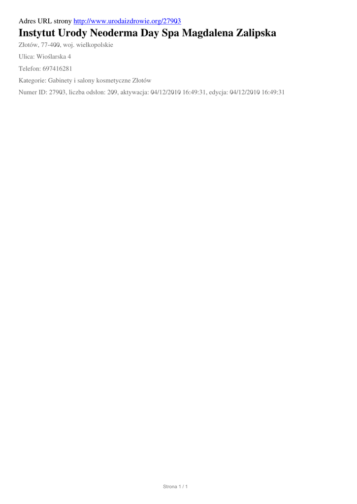 Instytut Urody Neoderma Day Spa Magdalena Zalipska, Zlotow