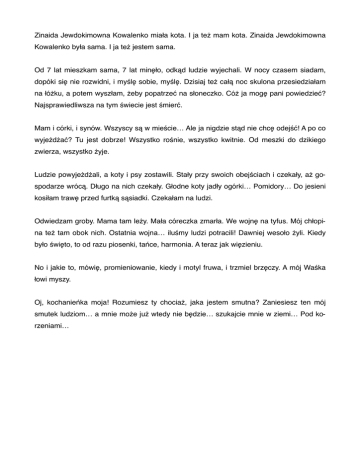 Zinaida Jewdokimowna Kowalenko miała kota. I ja też mam kota