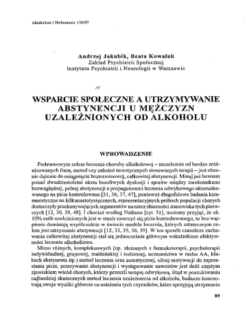wsparcie społeczne a utrzymywanie abstynencji u mężczyzn