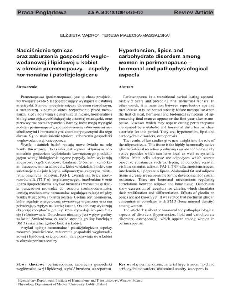 tabolicznymi i hormonalnymi charakterystycznymi dla tego