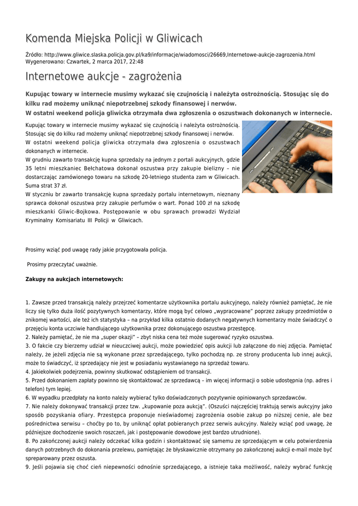 Komenda Miejska Policji w Gliwicach Internetowe aukcje
