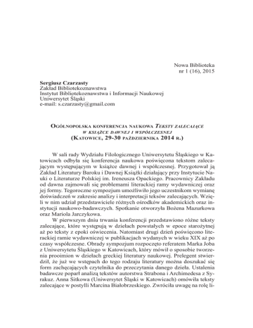Sergiusz Czarzasty: Ogólnopolska konferencja naukowa Teksty