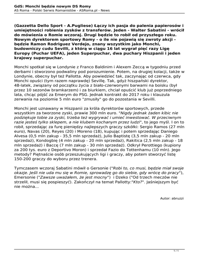 AS Roma - Polski Serwis Romanistów - ASRoma.pl - News