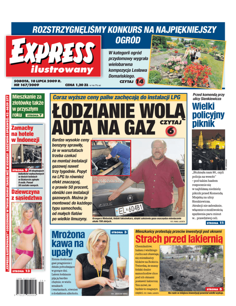 ROZSTRZYGNĘLIŚMY KONKURS NA NAJPIĘKNIEJSZY OGRÓD W kategorii ogród przydomowy wygrała wielobarwna kompozycja Lesława Domańskiego. CZYTAJ W TYM 7% VAT 14 Przed komendą przy ulicy Sienkiewicza ŁODZIANIE WOLĄ AUTA NA GAZ 6 Wielki policyjny piknik CZYTAJ FOT. AP Zamachy na hotele w Indonezji STRONA 9 W eksplozjach ładunków wybuchowych w dwóch hotelach w Dżakarcie zginęło 9 osób. Ponad 50 zostało rannych. Dziewczyna z sąsiedztwa Bardzo wysokie ceny benzyny sprawiły, że w warsztatach trzeba czekać na montaż instalacji gazowej nawet trzy tygodnie. Popyt na LPG to również efekt znaczącej, o prawie 50 procent, obniżki cen instalacji gazowych. Można je montować do każdego typu samochodu, od małych fiatów Matusiak, łódzki taksówkarz, dzięki założeniu gazu oszczędza miesięcznie po wielkie limuzyny. Grzegorz . około 700 złotych. FOT PAWEŁ ŁACHETA STRONA 13 ISSN 0137-9097 29 > 9 770137 909064 Mrożona kawa na upały Zimna doskonale gasi pragnienie i działa pobudzająco w gorące dni. Latem łodzianie piją ją bardzo chętnie, w wielu smakach i wariantach, również z dodatkiem alkoholu. STRONA 3 FOT. ARCHIWUM Coraz wyższe ceny paliw zachęcają do instalacji LPG „Stuknęła nam 90., czyli policja na wesoło” -- pod takim hasłem rozpocznie się w najbliższą niedzielę piknik przed Komendą Miejską na ulicy Sienkiewicza. Atrakcji nie zabraknie, włącznie z możliwością spędzenia paru minut w... prawdziwej celi. STRONA 11 Mieszkańcy protestują przeciw inwestycji pod oknami Strach przed lakiernią FOT. JAROSŁAW ZIAREK Chemikaliów, hałasu i wielkiego ruchu aut obawiają się mieszkańcy bloków na Rokiciu. Twierdzą, że znany łódzki dealer samochodów chce pod ich oknami postawić lakiernię. Ten mówi, że będzie to magazyn części. FOT. PAWEŁ ŁACHETA FOT. PAWEŁ ŁACHETA Mieszkanie za złotówkę także w przyszłym roku STRONA 7 FOT. JANUSZ KUBIK „EXPRESS ILUSTROWANY” CODZIENNIE W TWOIM DOMU! TANIEJ NIŻ W KIOSKU! ZADZWOŃ I SPRAWDŹ: 42 - 6659 377 SOBOTA, 18 LIPCA 2009 R. NR 167/2009 CENA 1,20 ZŁ STRONA 5 Na razie w miejscu inwestycji powstał wielki wykop.