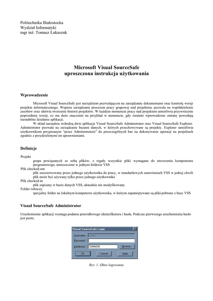 Microsoft Visual SourceSafe uproszczona instrukcja użytkowania